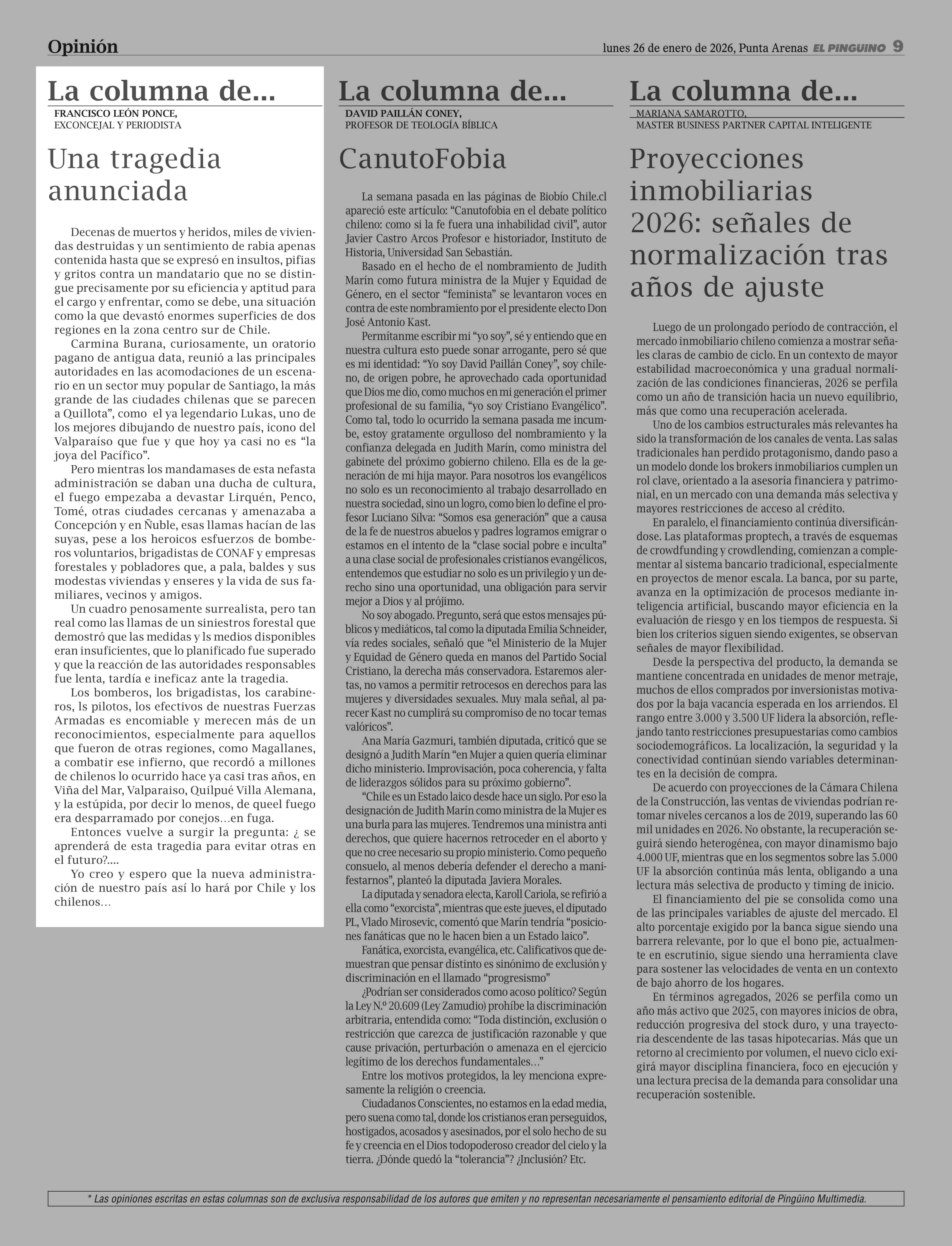 Fecha: 26-01-2026 Sector: Columnas de Opinión Región: Región de Magallanes y de la Antártica Chilena
