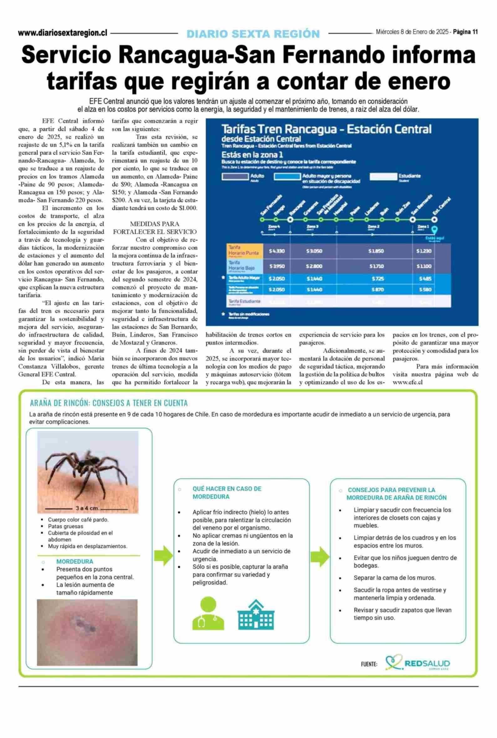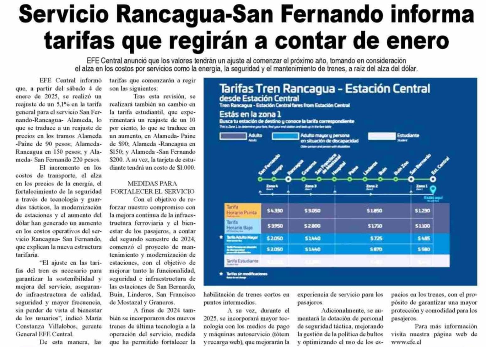 Servicio Rancagua-San Fernando informa tarifas que regirán a contar de enero 08-01-2025 Diario VI Región |