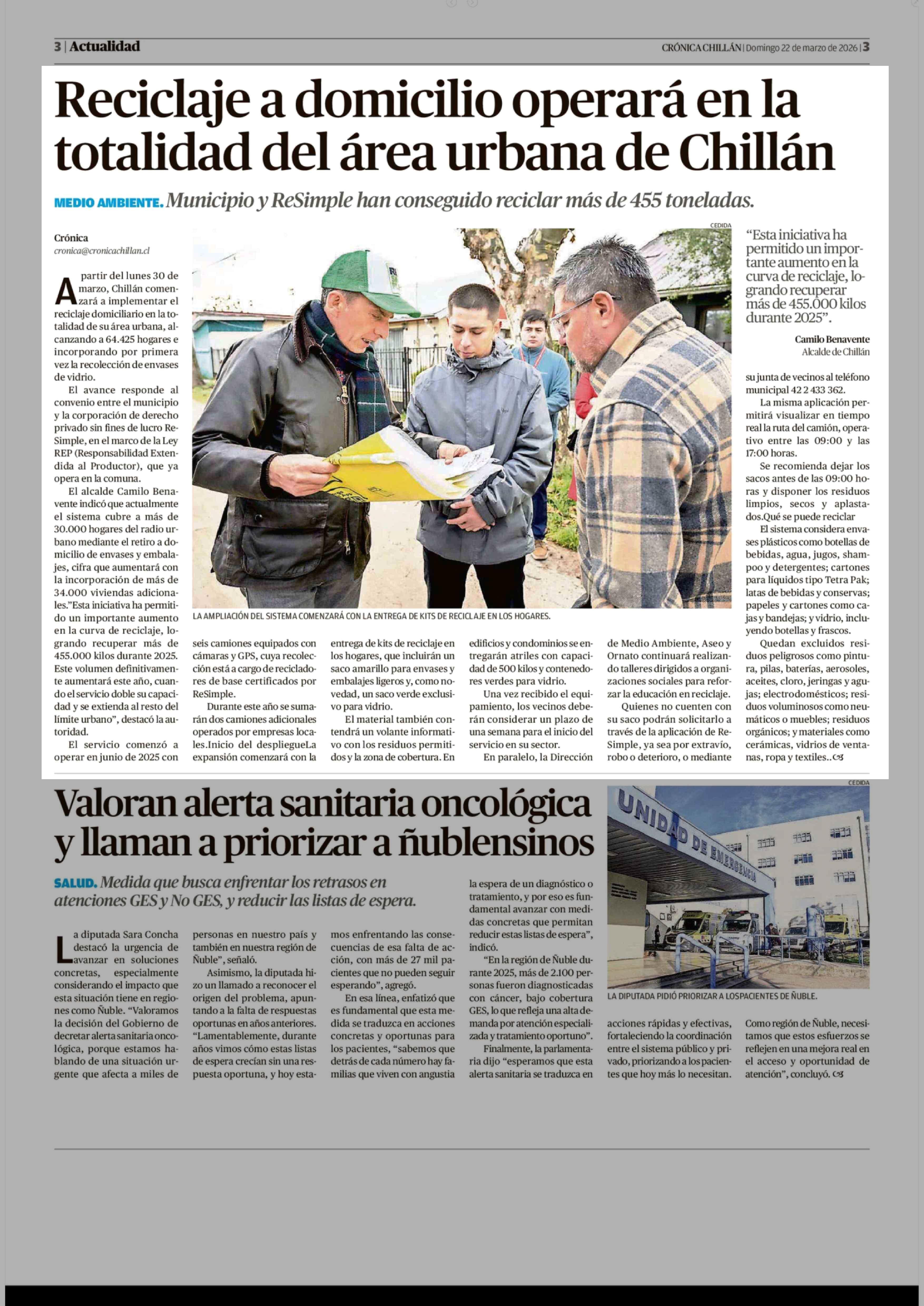 Título: Reciclaje a domicilio operará en la totalidad del área urbana de Chillán