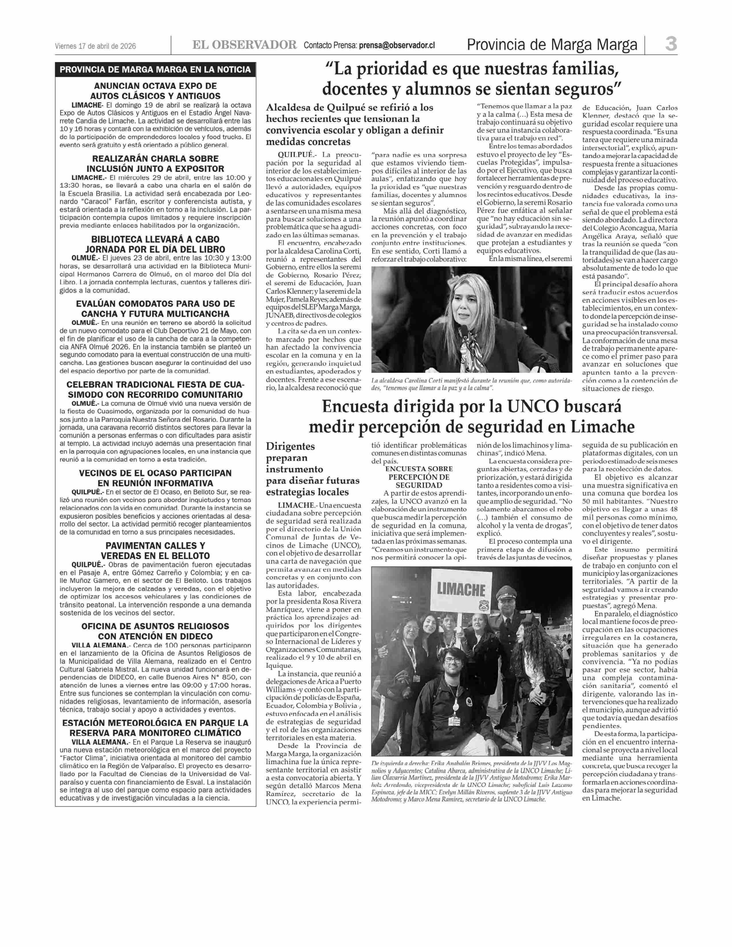 “La prioridad es que nuestras familias, docentes v alumnos se sientan seguros” 17-04-2026 El Observador |