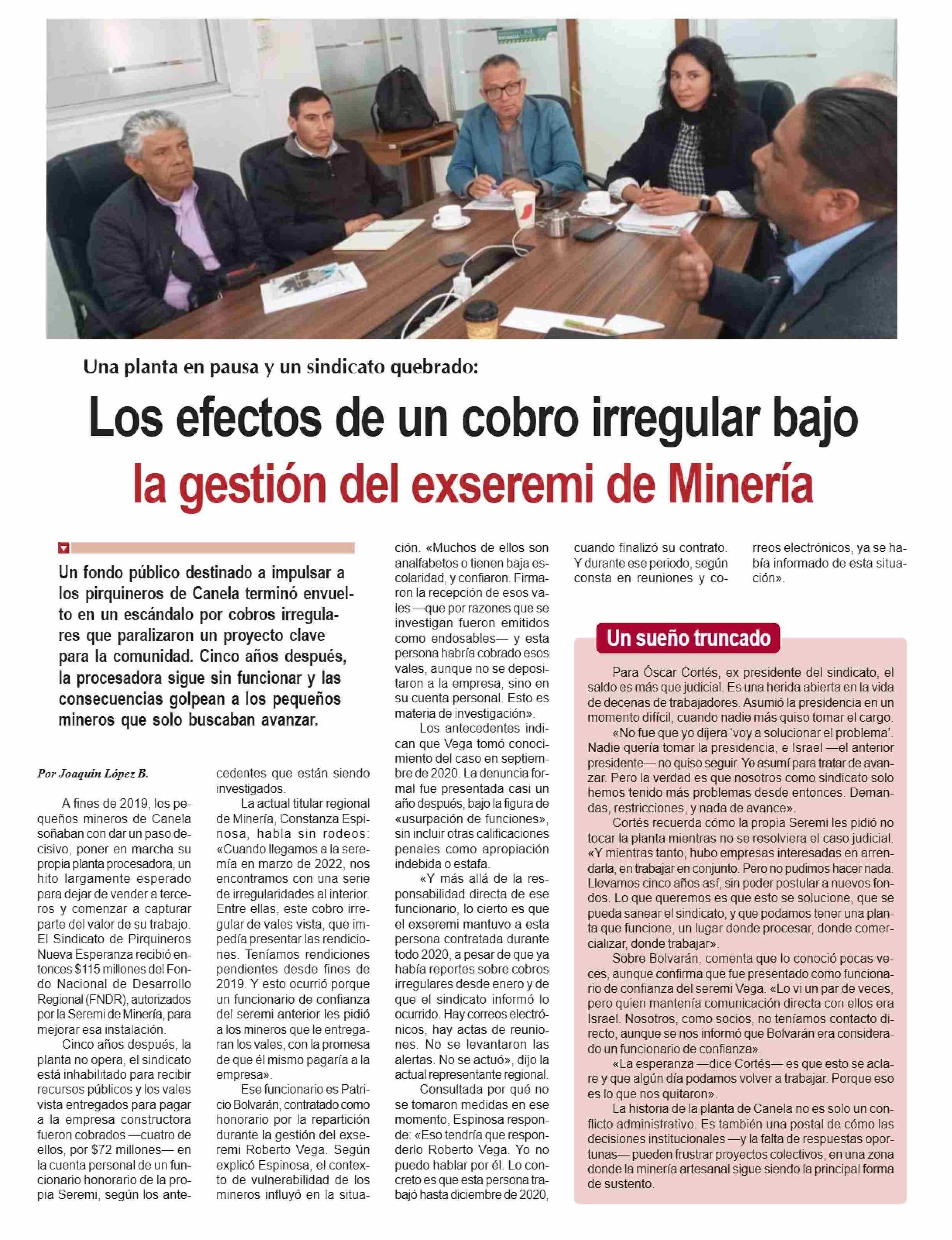 Los efectos de un cobro irregular bajo la gestión del exseremi de Minería 30-05-2025 Diario la Región |