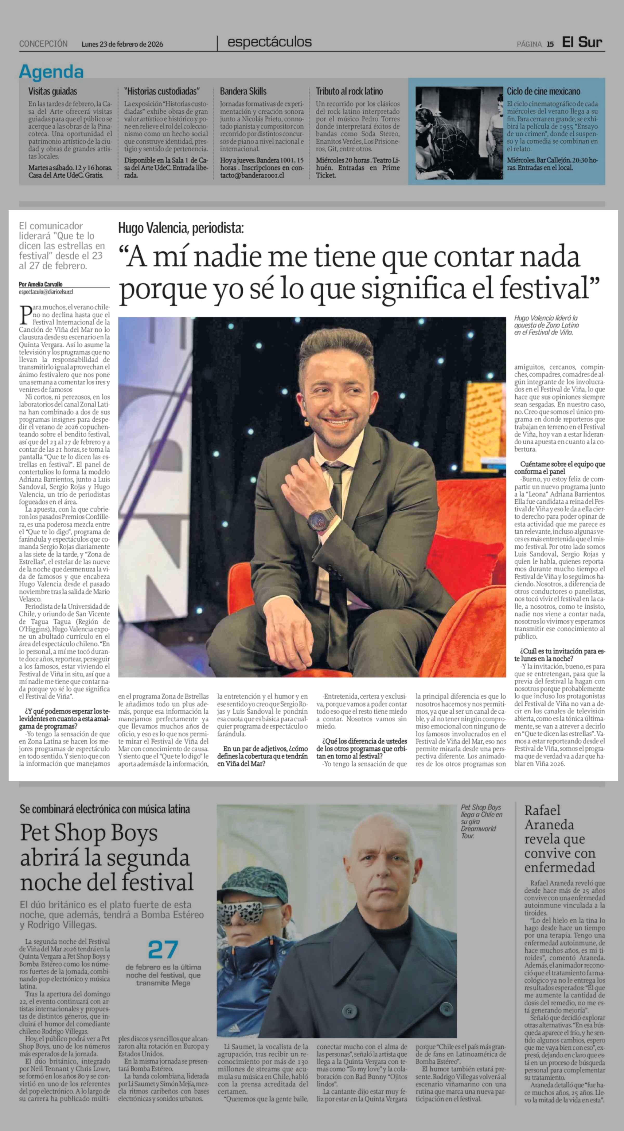 "A mí nadie me tiene que contar nada porque yo sé lo que significa el festival" 23-02-2026 El Sur |