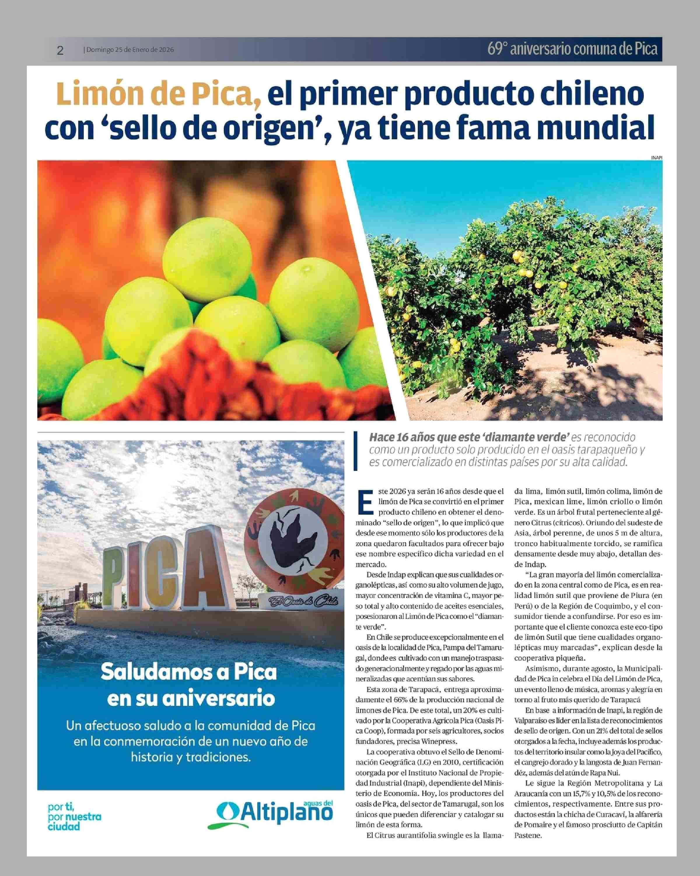 Limón de Pica, el primer producto chileno con 'sello de origen', ya tiene fama mundial 25-01-2026 La Estrella de Iquique |