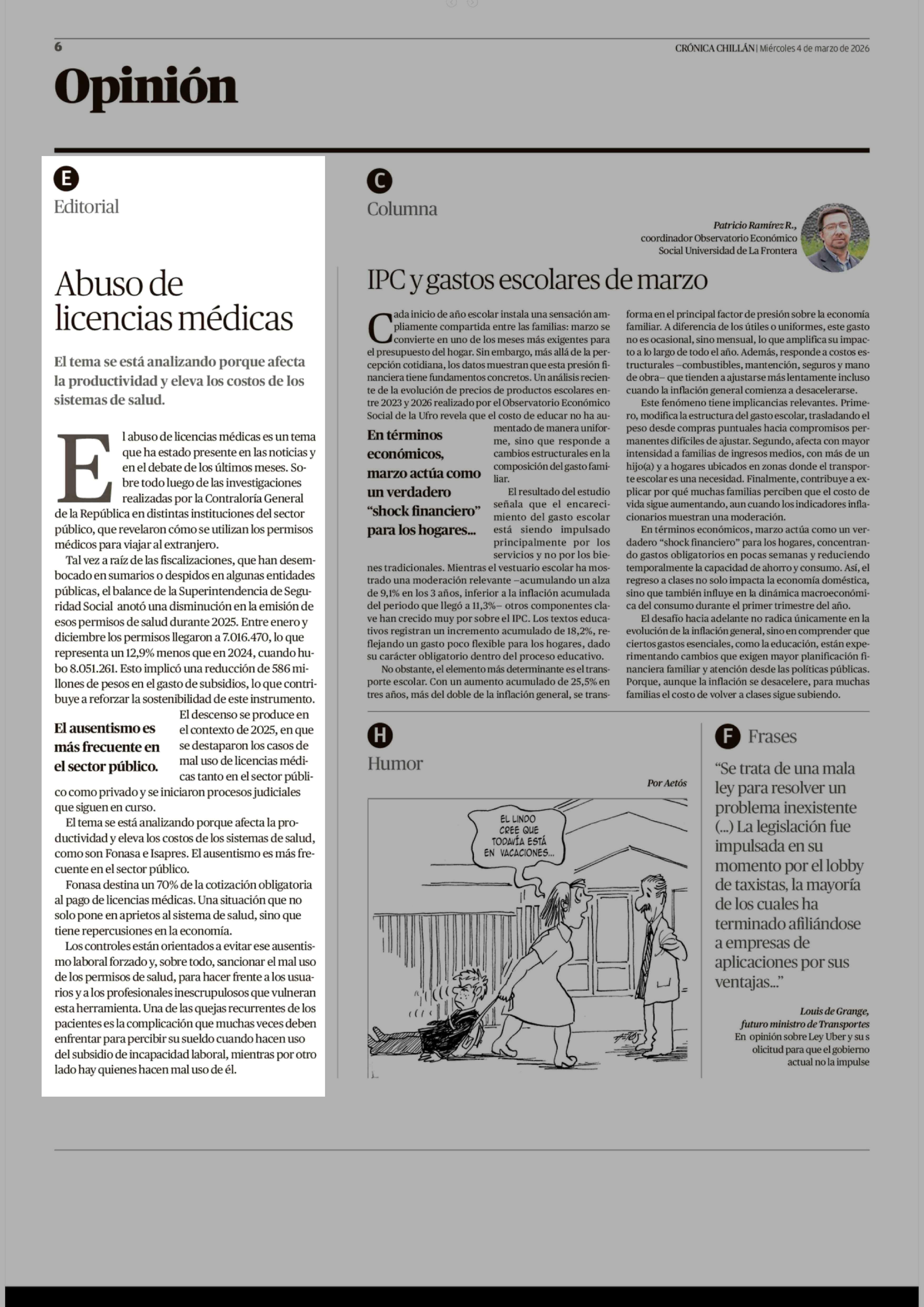 Editorial: Abuso de licencias médicas 04-03-2026 Crónica de Chillán |