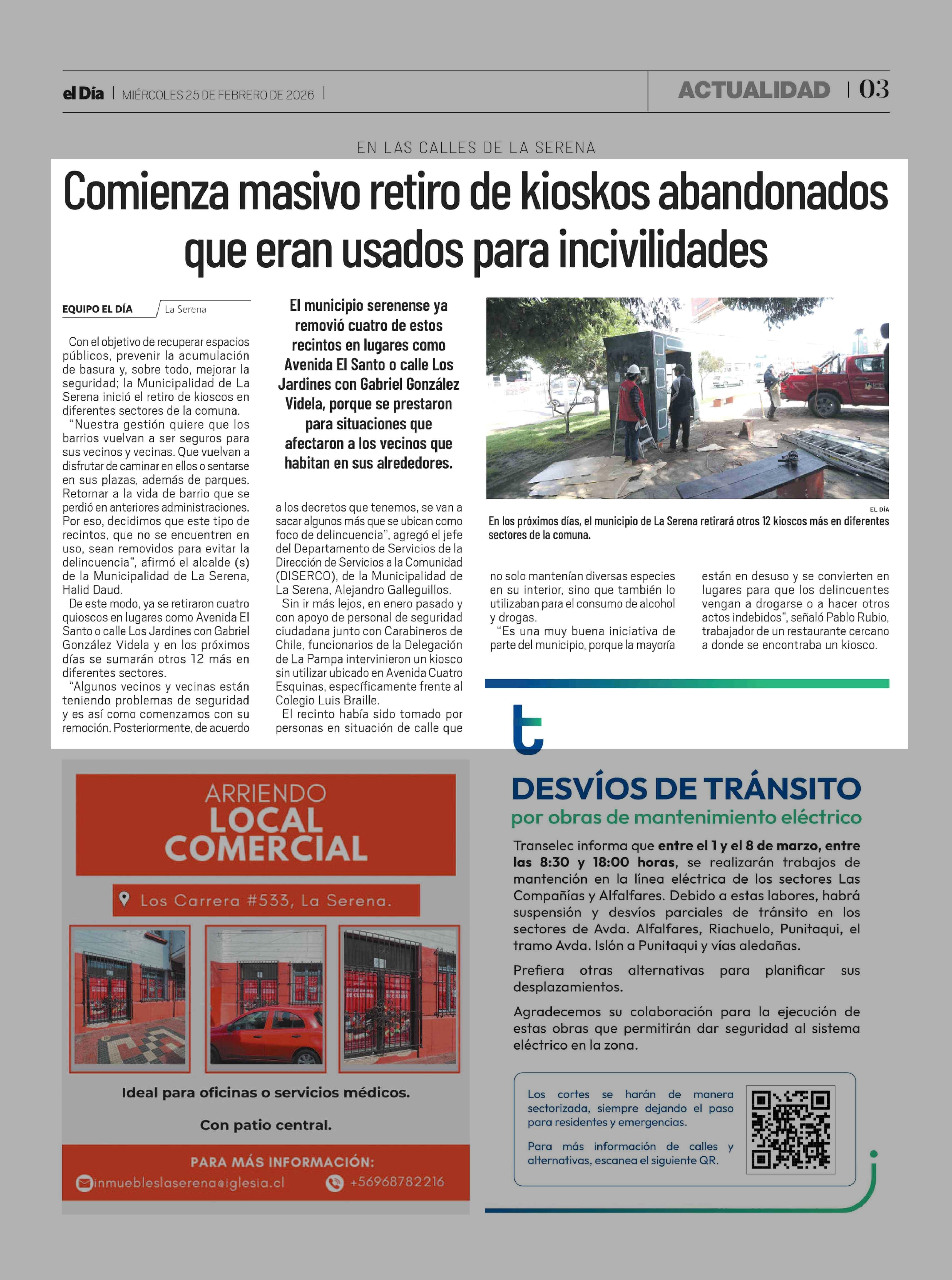 Título: Comienza masivo retiro de kioskos abandonados que eran usados para incivilidades