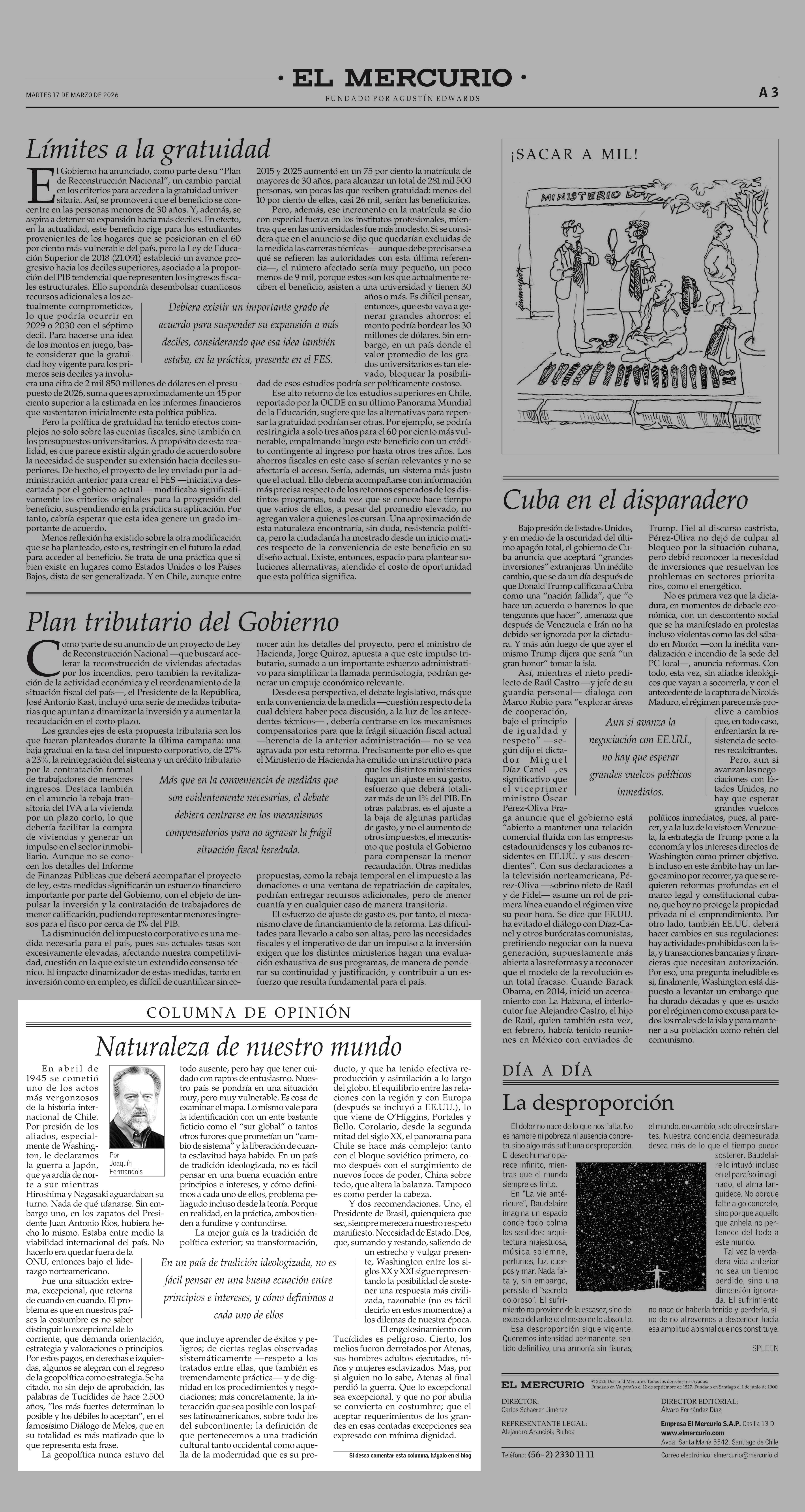 Columnas de Opinión: Naturaleza de nuestro mundo 17-03-2026 El Mercurio |
