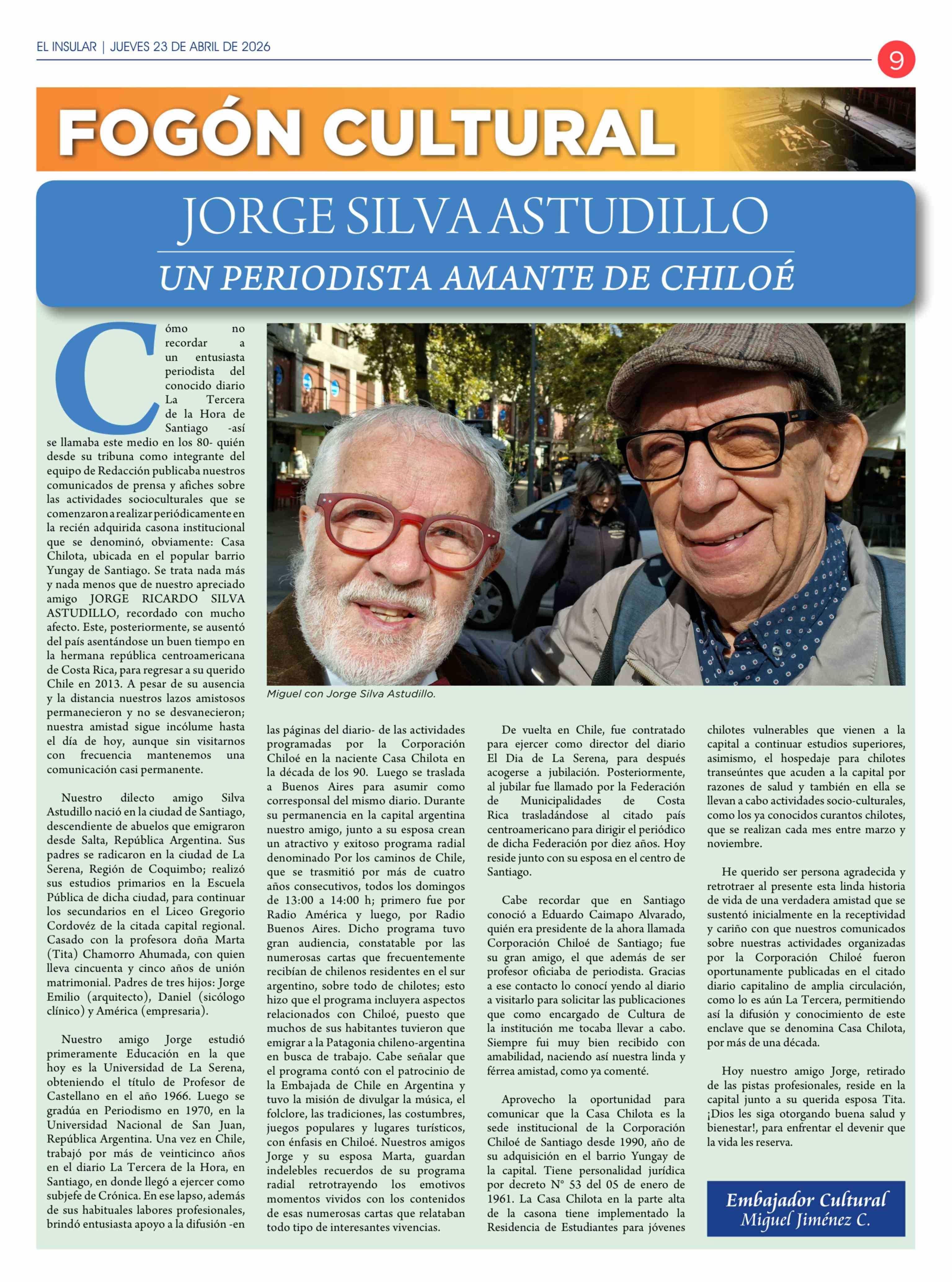 JORGE SILVA ASTUDILLO UN PERIODISTA AMANTE DE CHILOÉ 23-04-2026 El Insular |