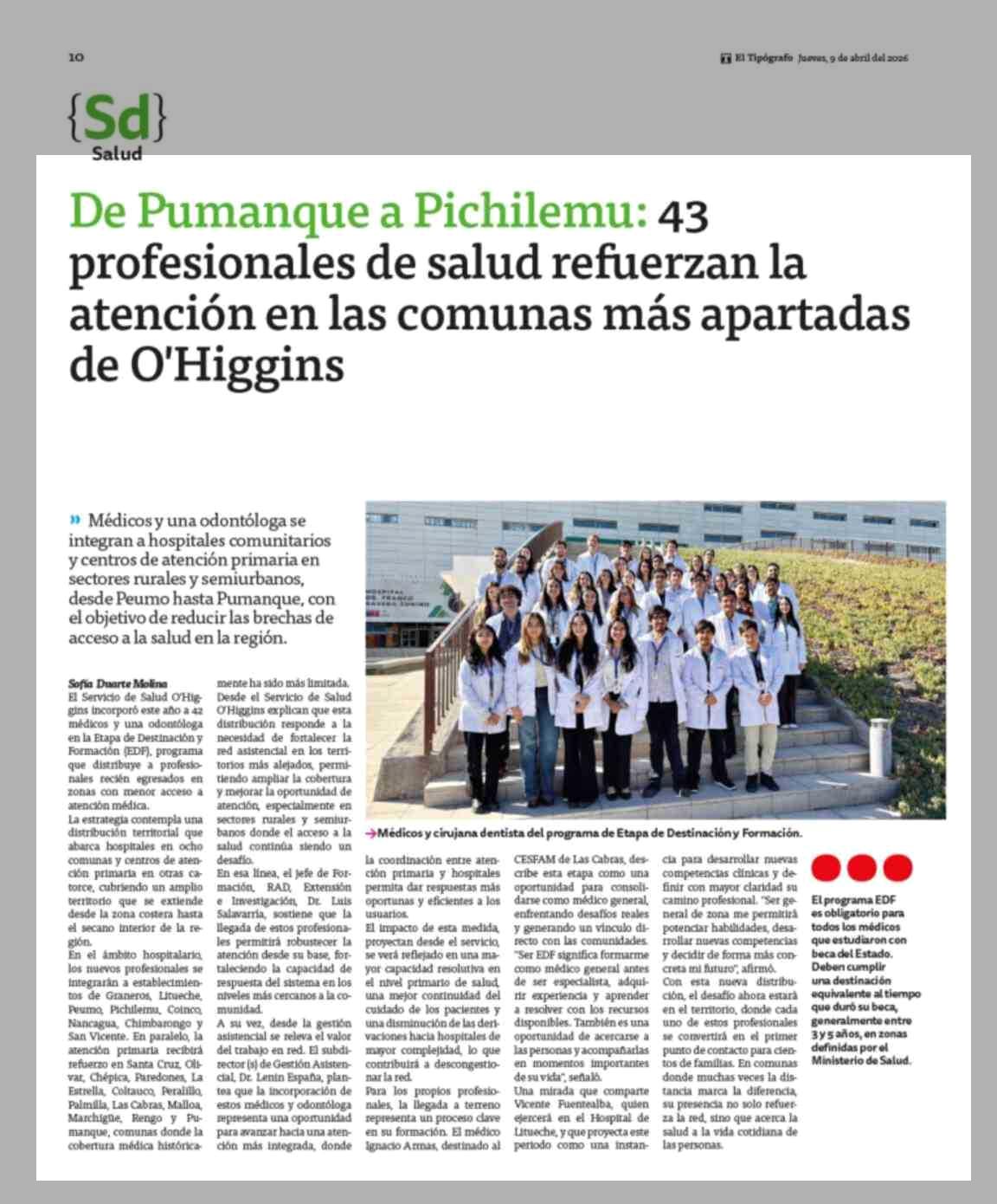 Fecha: 09-04-2026 Sector: Noticia general Región: Región del Libertador General Bernardo O'Higgins