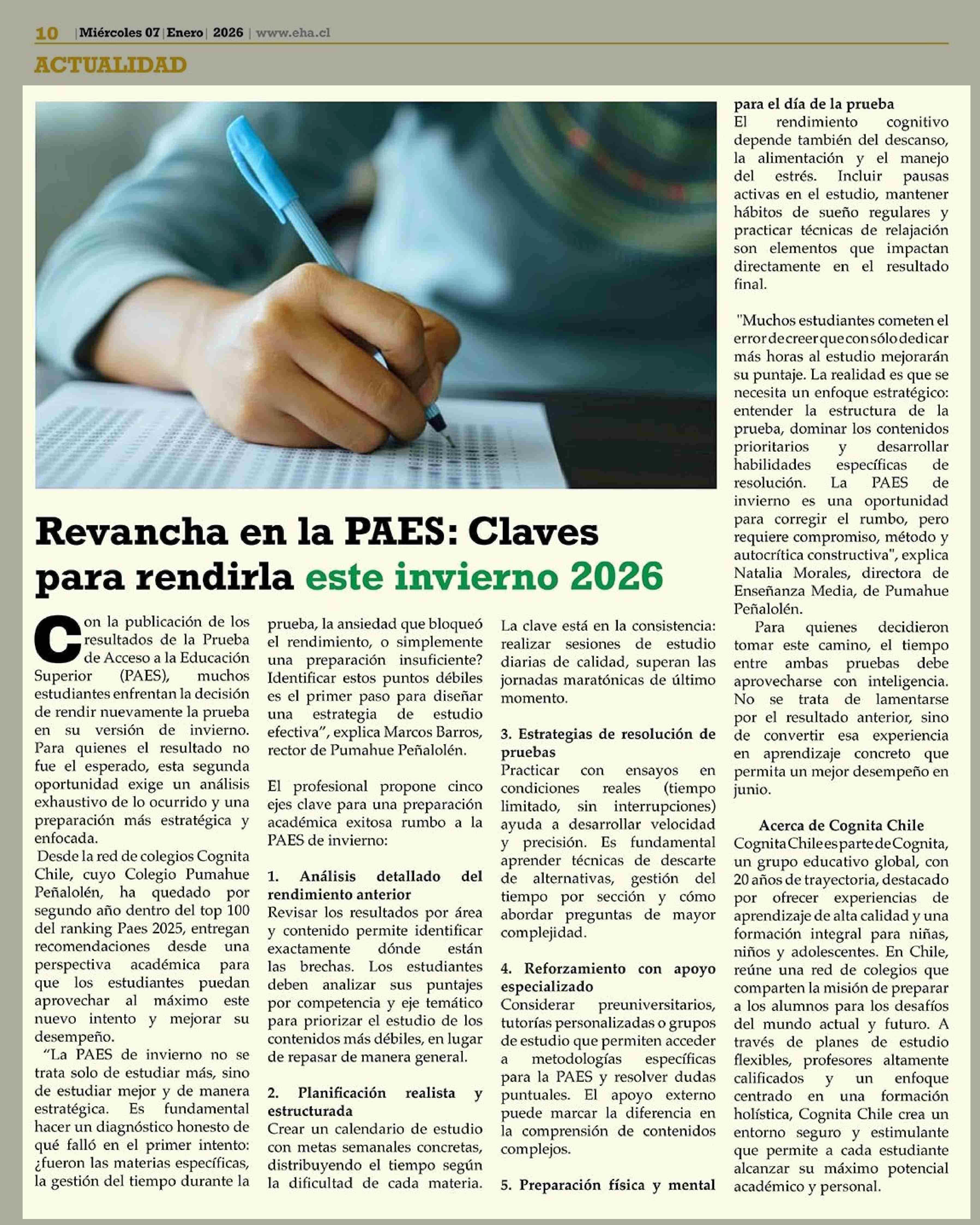 Revancha en la PAES: Claves para rendirla este invierno 2026 07-01-2026 El Heraldo Austral |