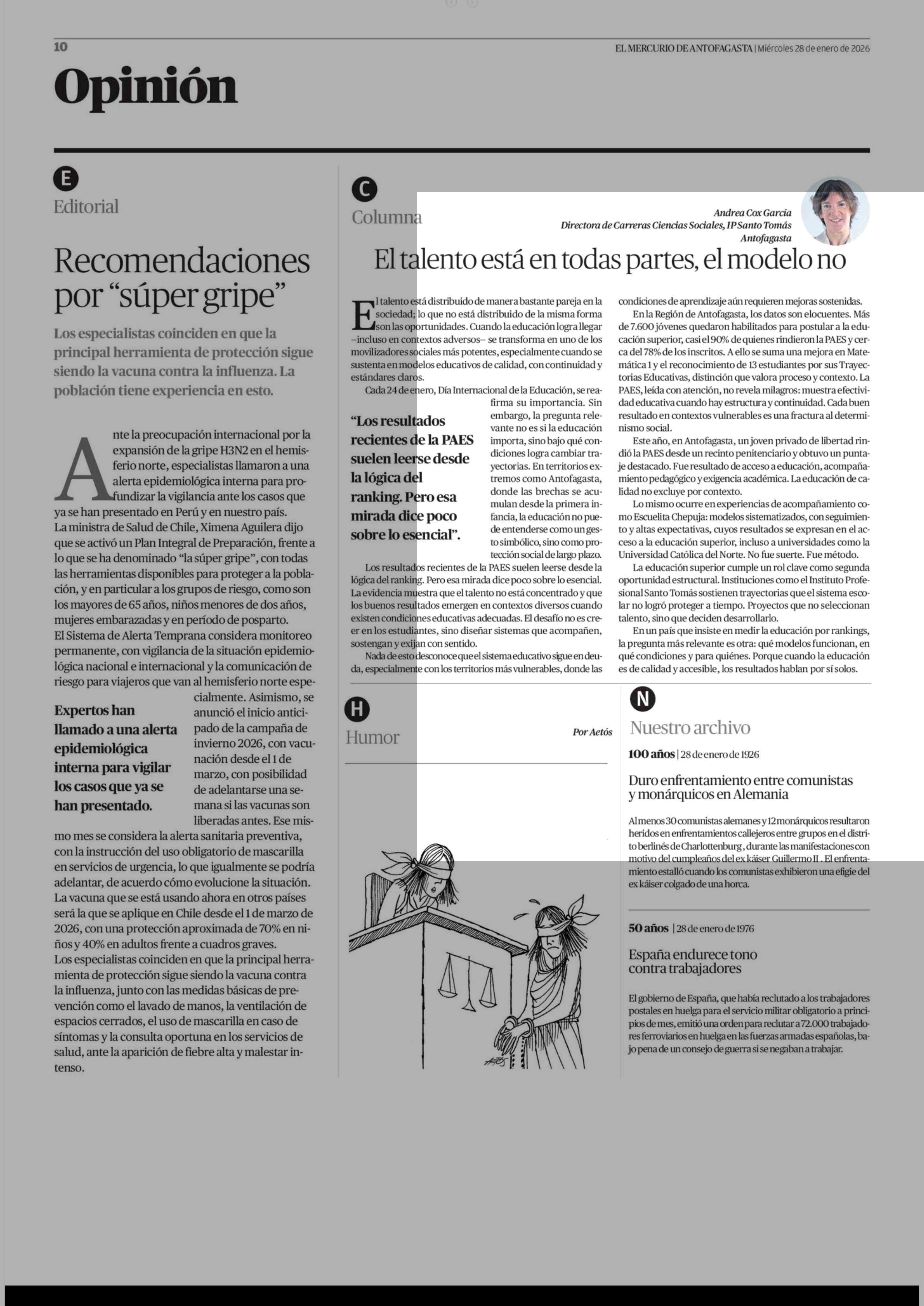 El talento está en todas partes, el modelo no 28-01-2026 El Mercurio de Antofagasta |