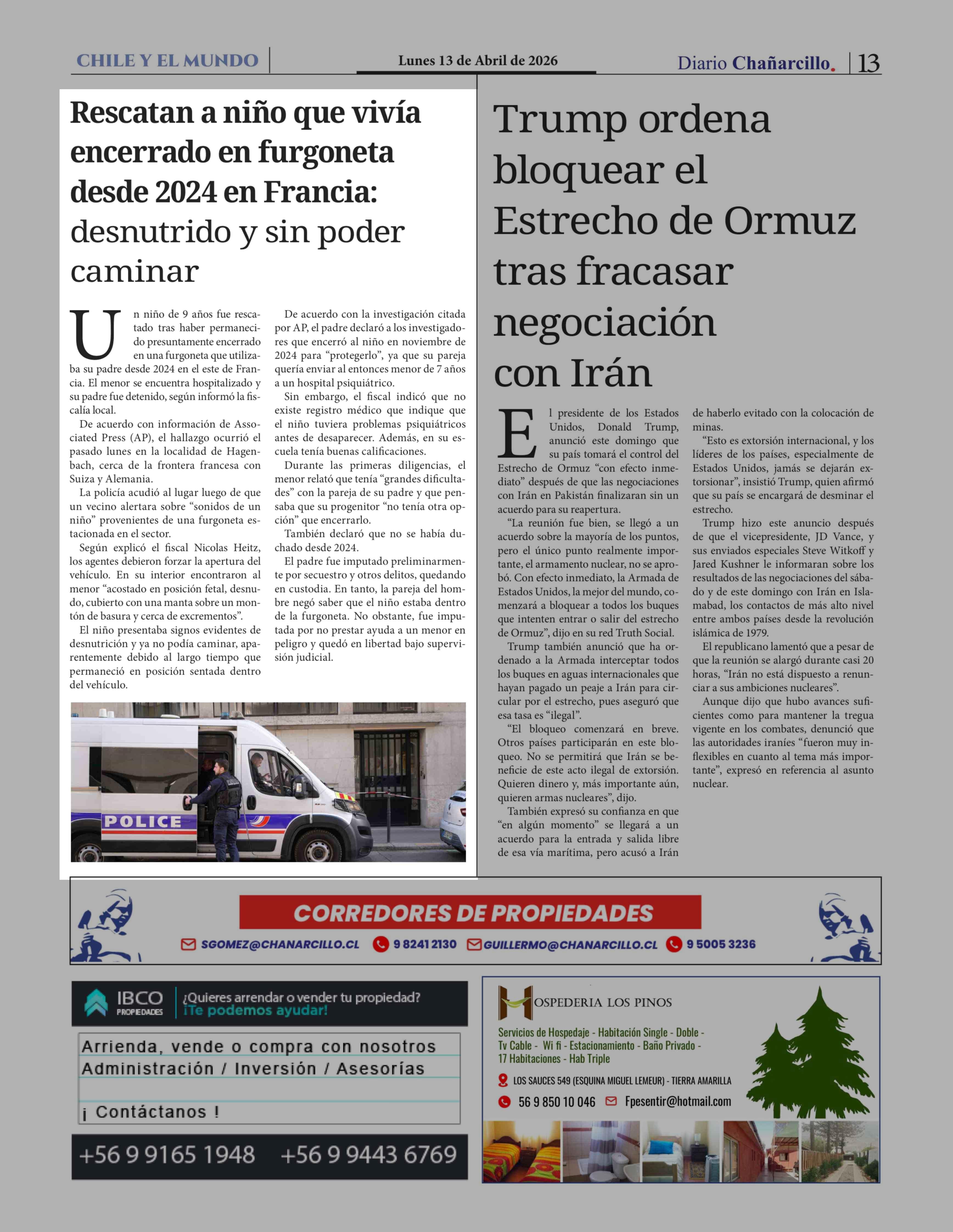 Fuente: Diario Chañarcillo (Diario Chanarcillo) Página(s): 13