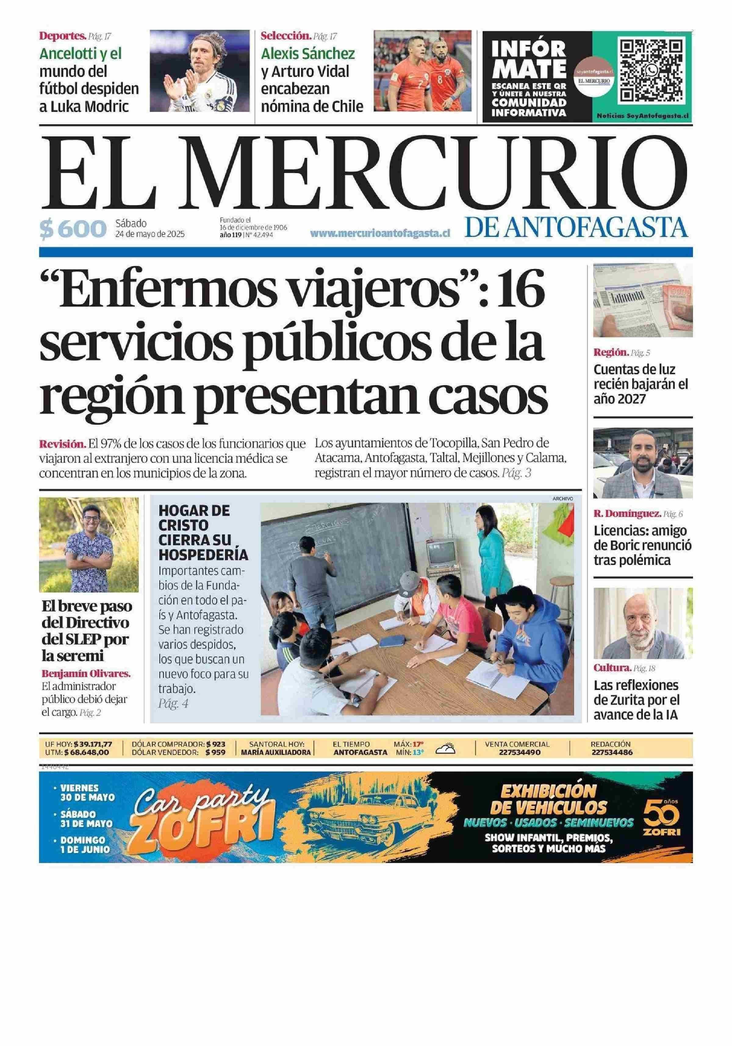 | Fecha: | 24-05-2025 | Sector: | Portada | Región: | Región de Antofagasta |