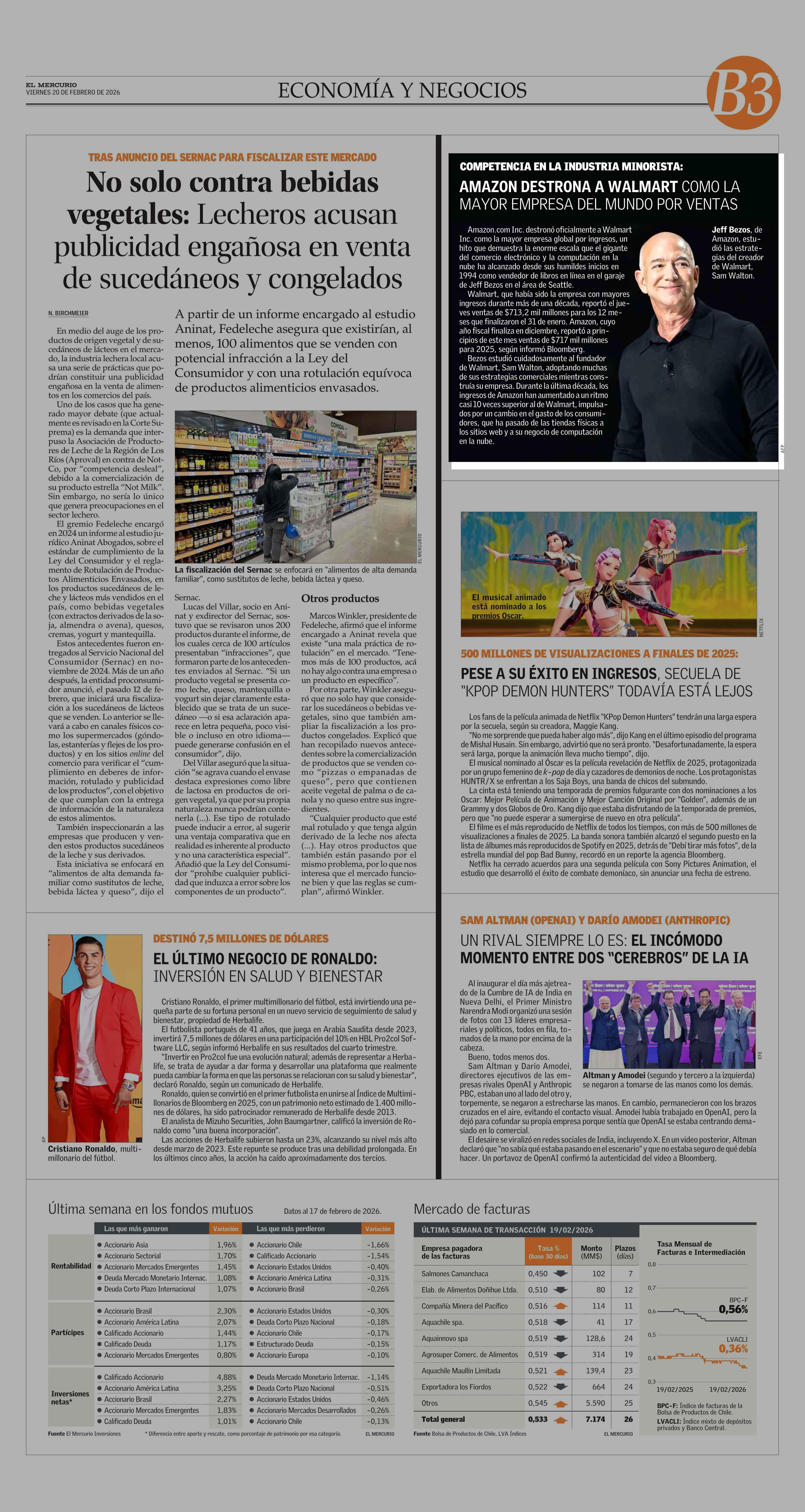 AMAZON DESTRONA A WALMART COMO LA MAYOR EMPRESA DEL MUNDO POR VENTAS 20-02-2026 El Mercurio |