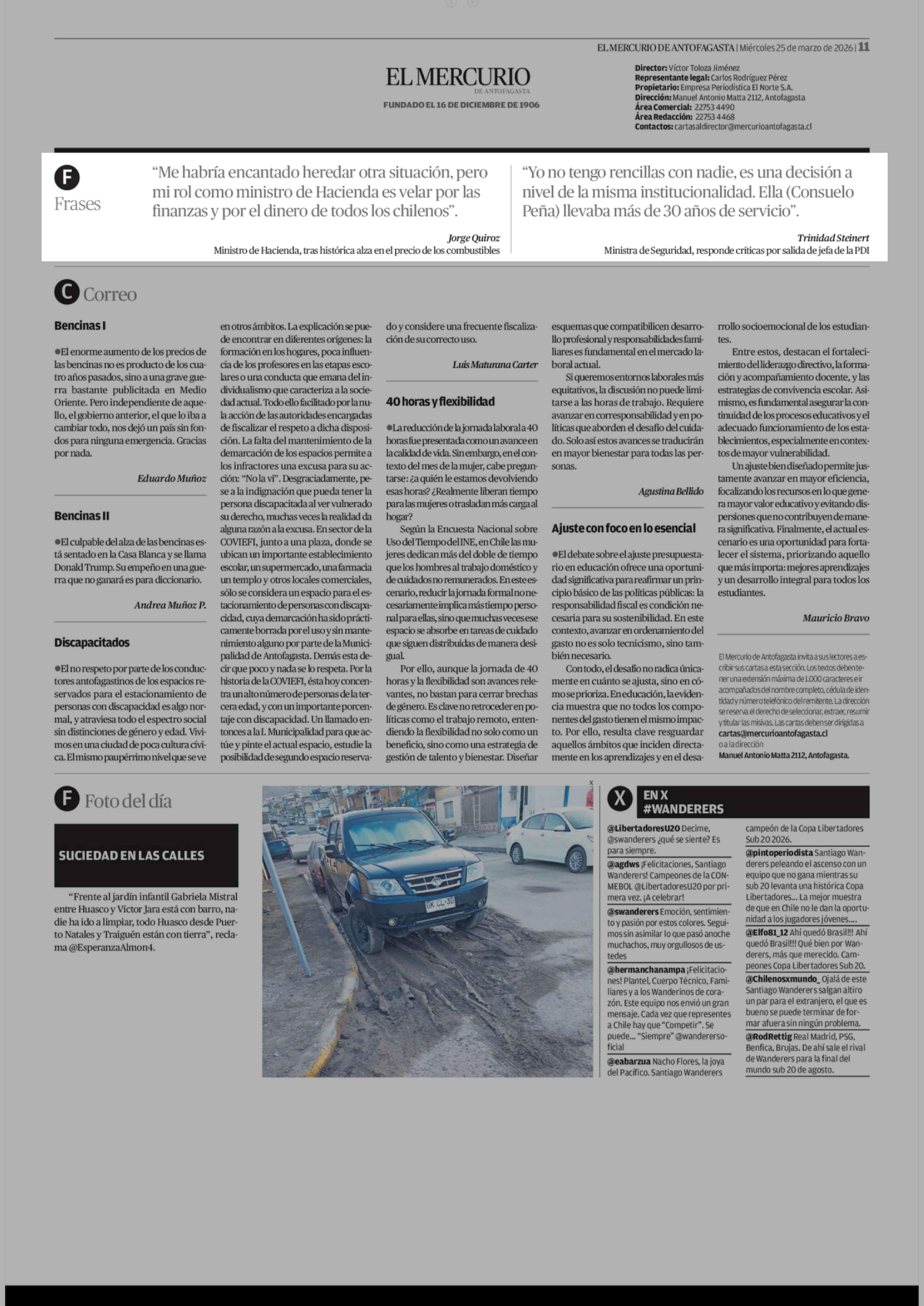Fuente: El Mercurio de Antofagasta (El Mercurio de Antofagasta) Página(s): 11
