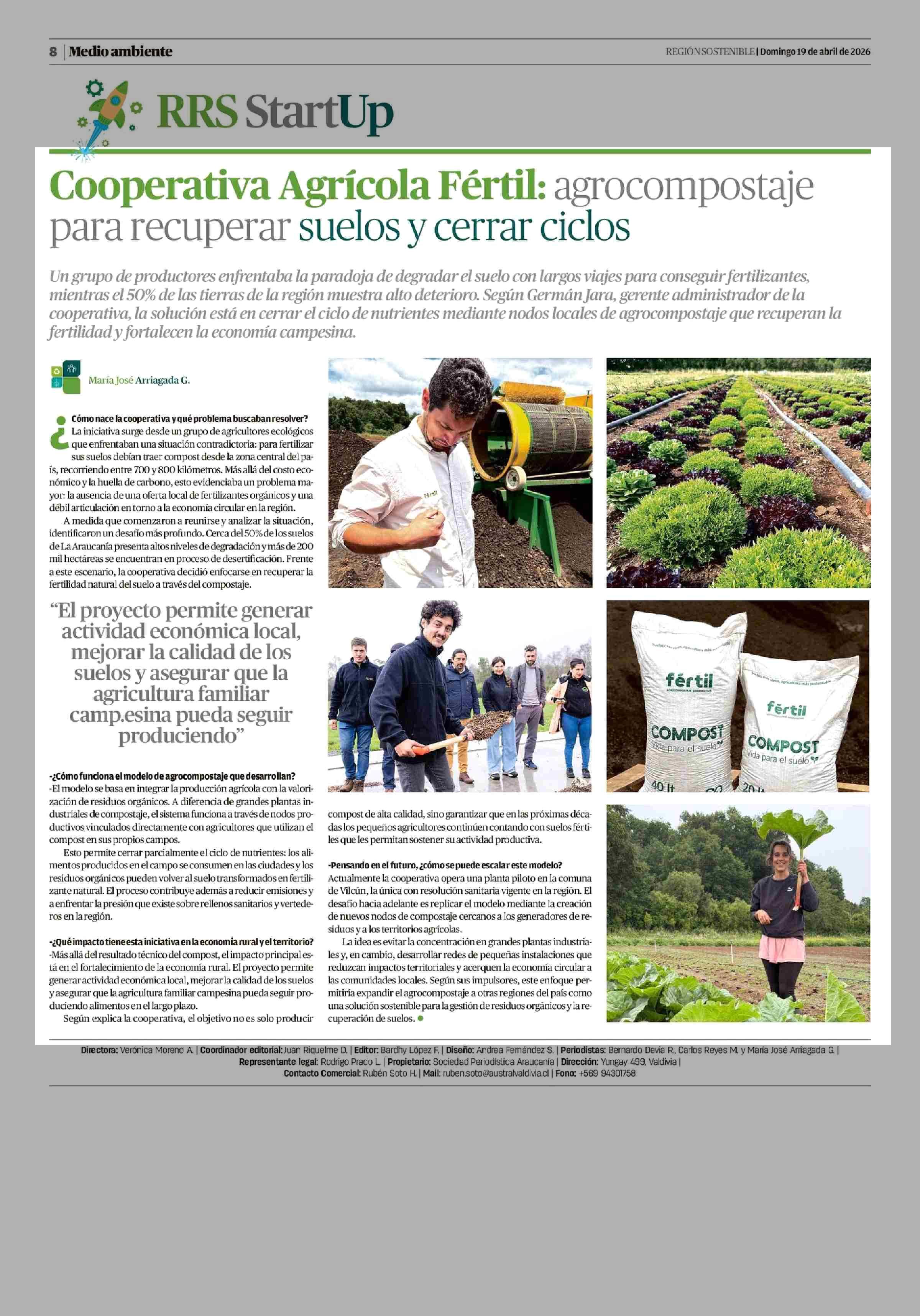Cooperativa Agrícola Fértil: agrocompostaje para recuperar suelos y cerrar ciclos 19-04-2026 Diario Austral Región de Los Ríos |