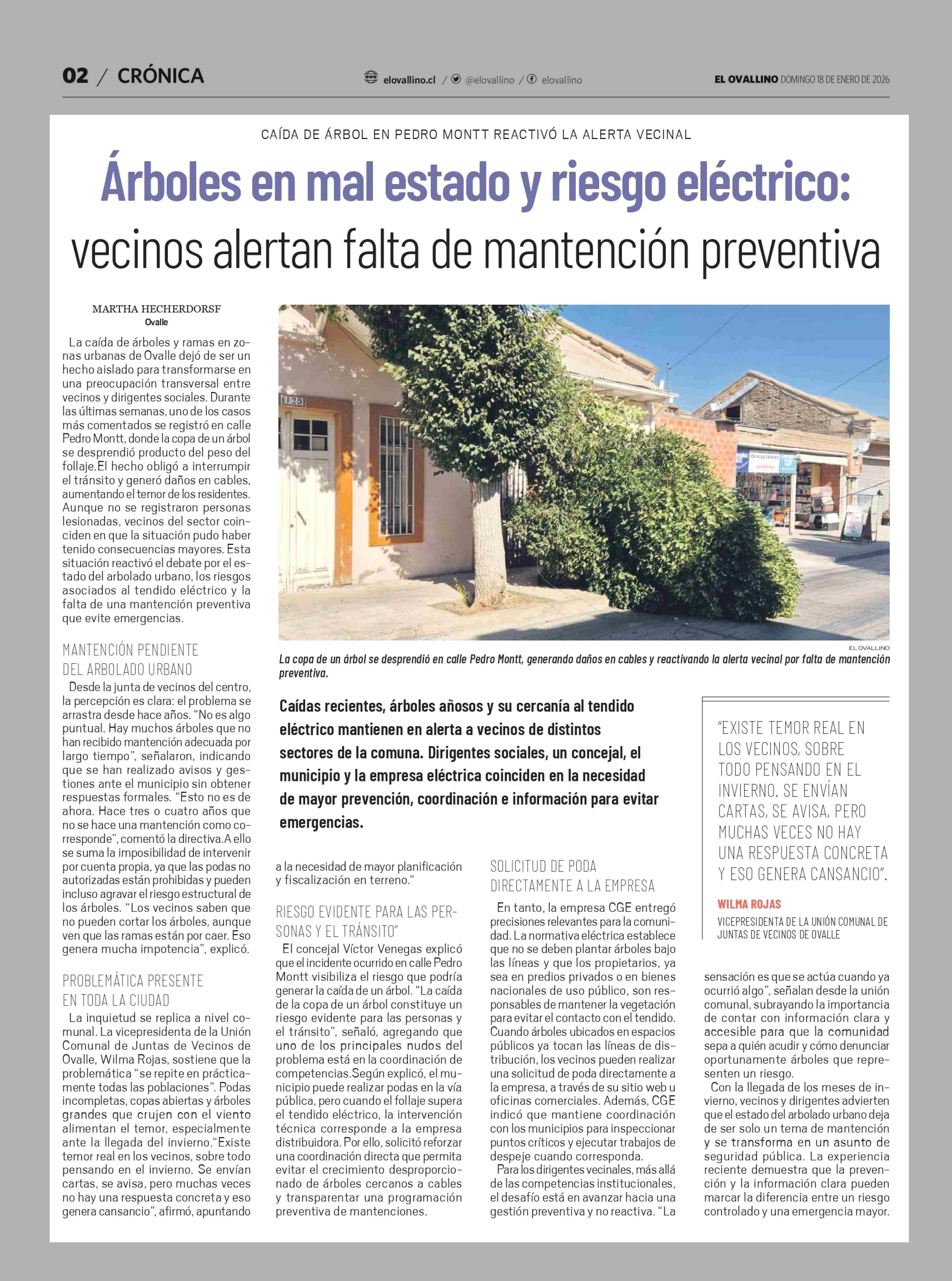 Título: Árboles en mal estado y riesgo eléctrico: vecinos alertan falta de mantención preventiva