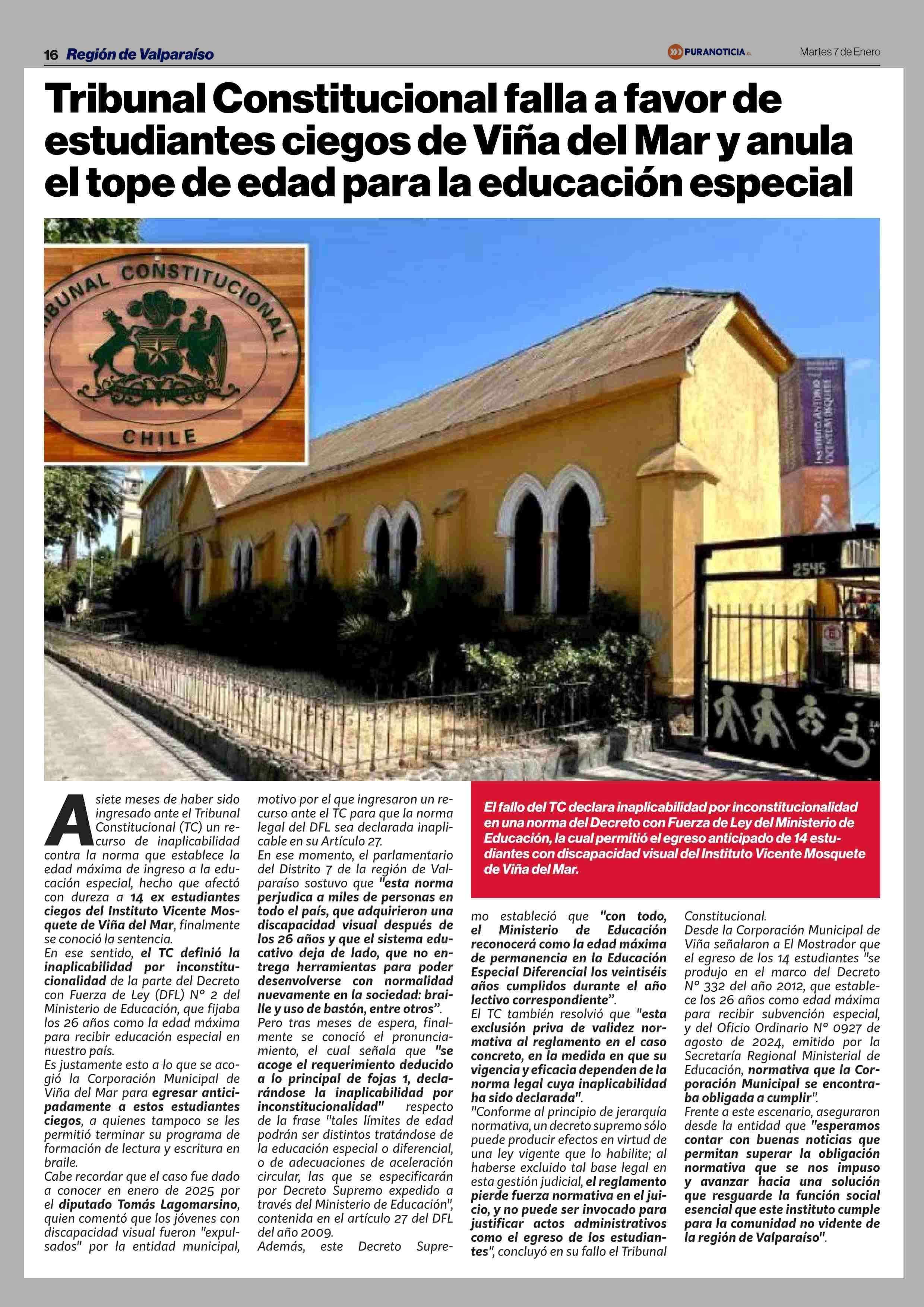 Título: Tribunal Constitucional falla a favor de estudiantes ciegos de Viña del Mar y anula el tope de edad para la educación especial
