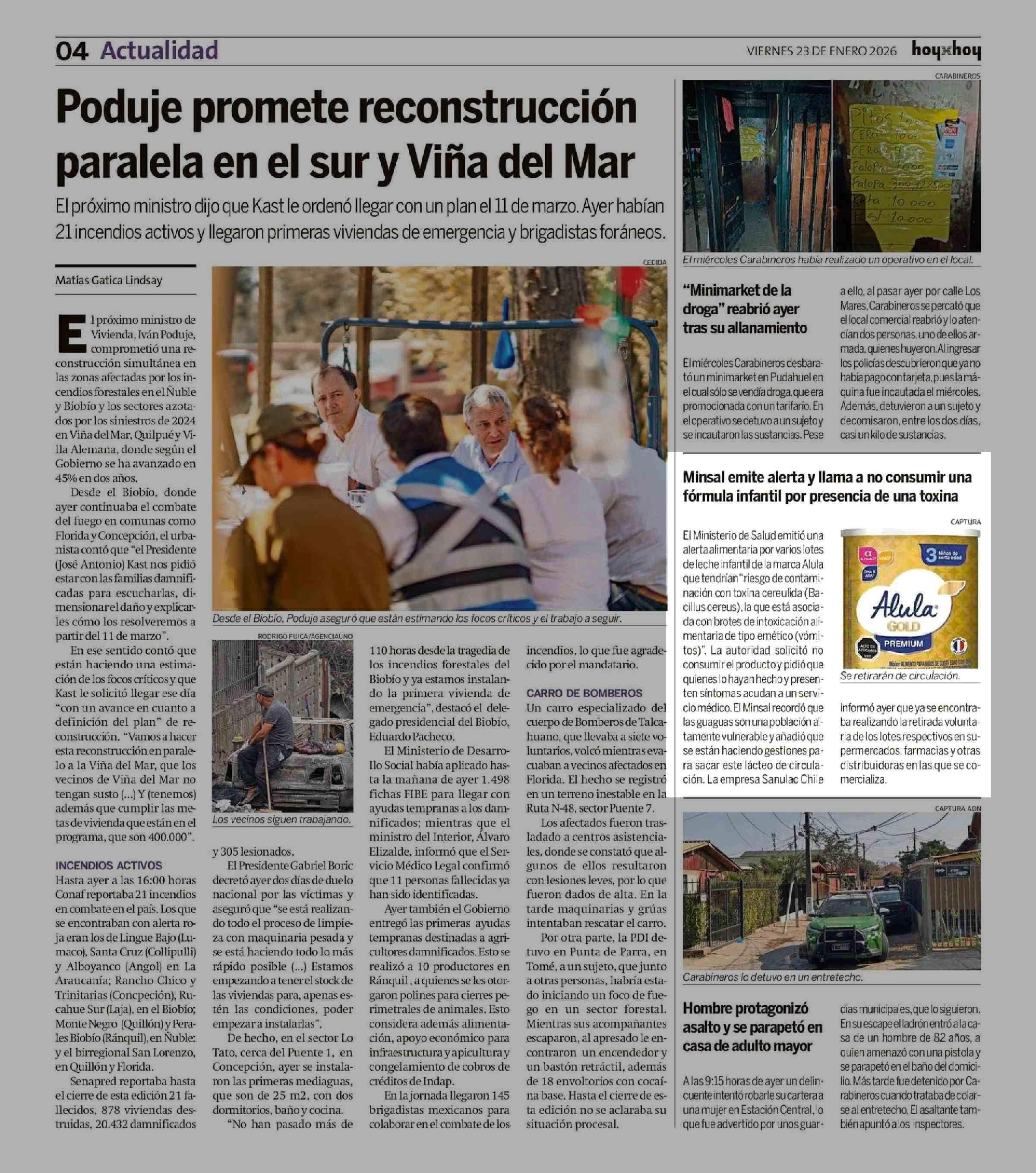 Minsal emite alerta y llama a no consumir una fórmula infantil por presencia de una toxina 23-01-2026 Hoy x Hoy |