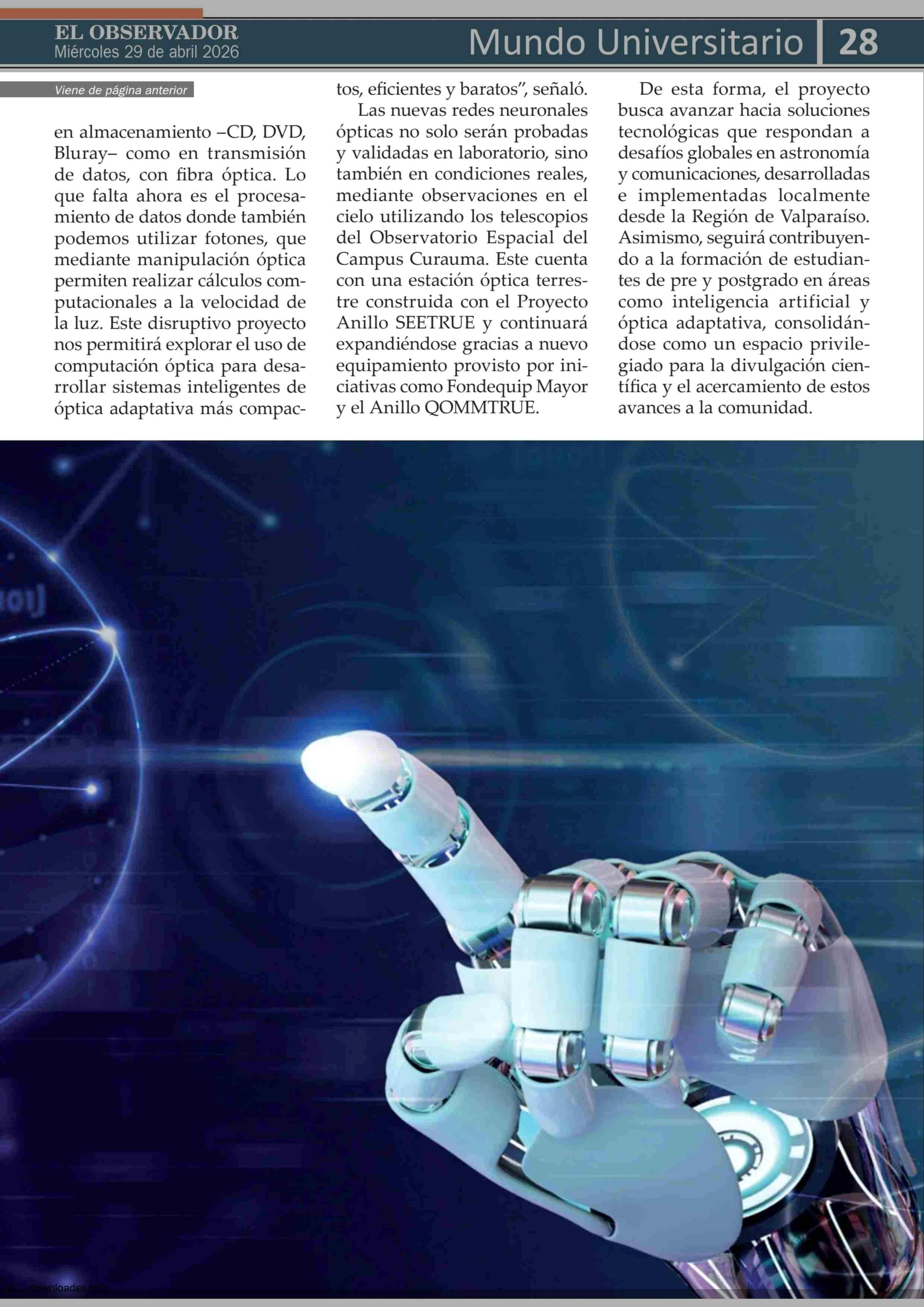 Título: Proyecto PUCV aborda el uso de tecnologías para mejorar la observación astronómica y las comunicaciones ópticas