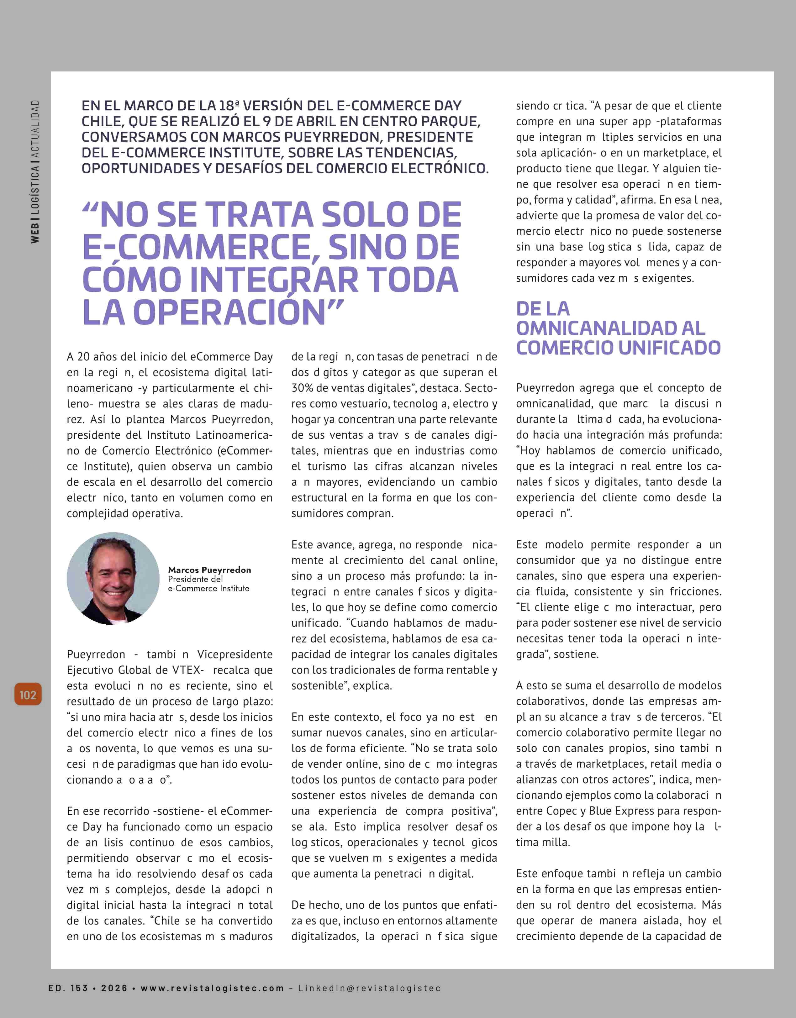“NO SE TRATA SOLO DE E-COMMERCE, SINO DE COMO INTEGRAR TODA LA OPERACION” 23-04-2026 Revista Logistec |