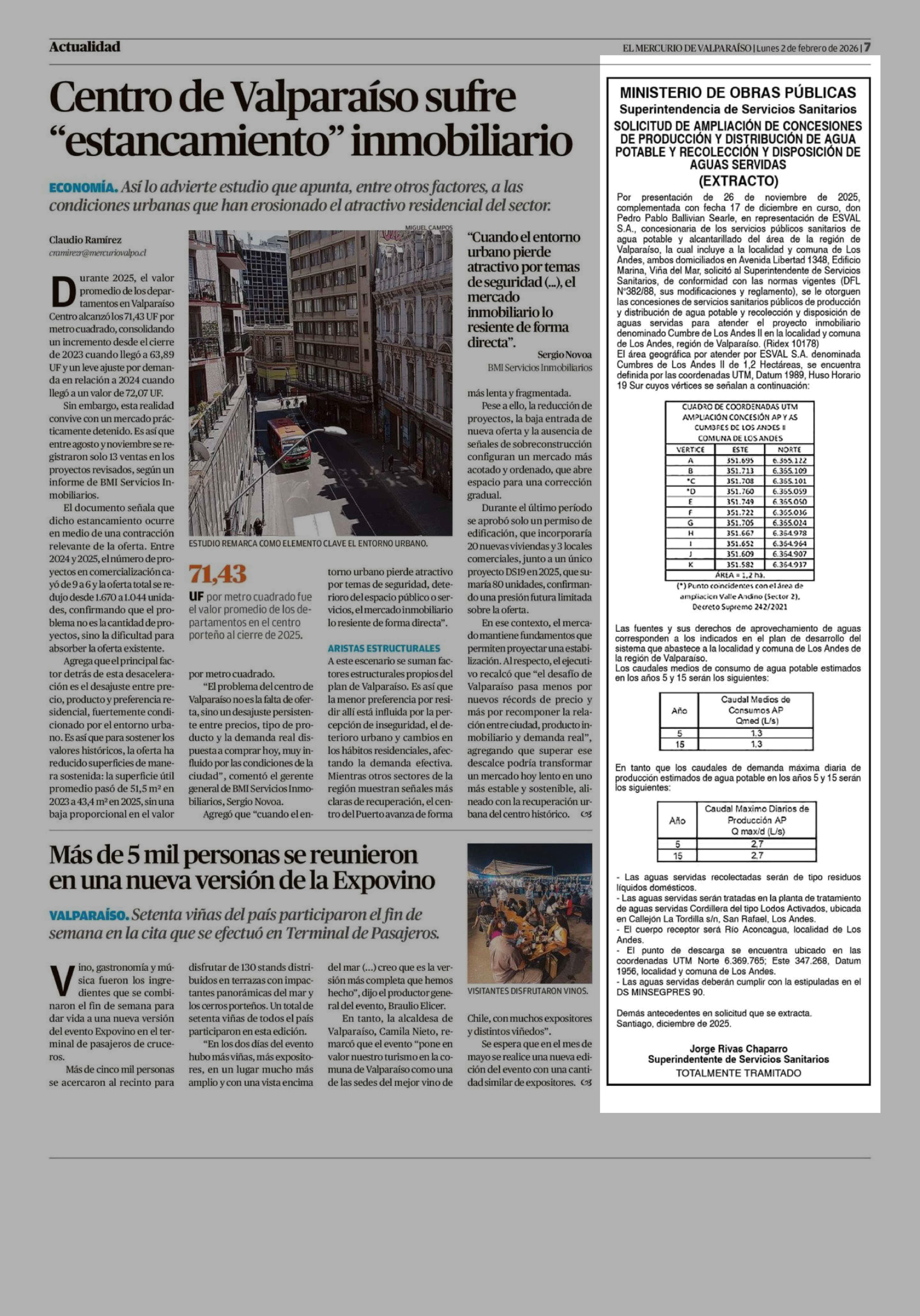 Extractos: MINISTERIO DE OBRAS PÚBLICAS 02-02-2026 El Mercurio de Valparaíso |