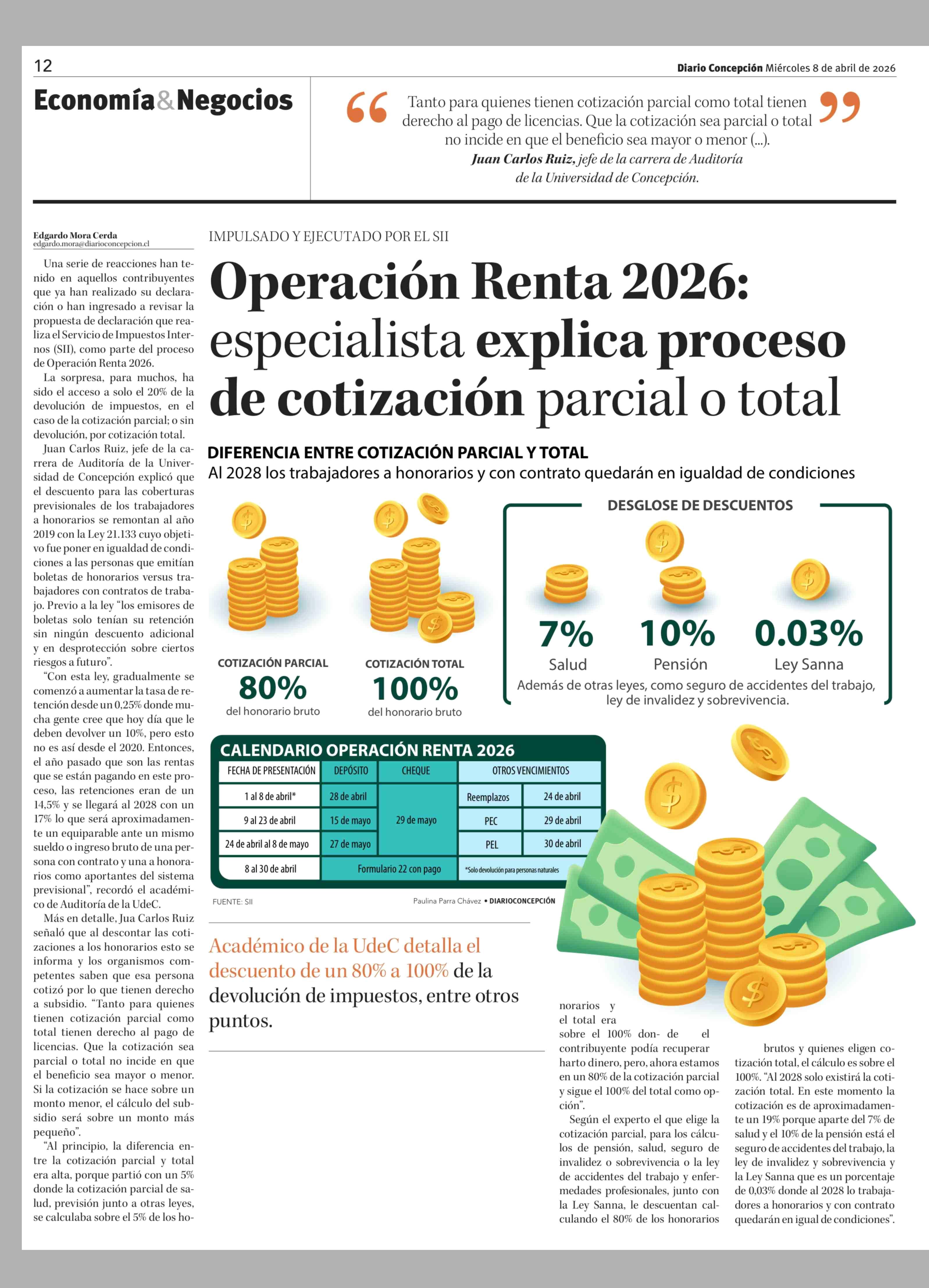 Operación Renta 2026: especialista explica proceso de cotización parcial o total 08-04-2026 Diario Concepción |