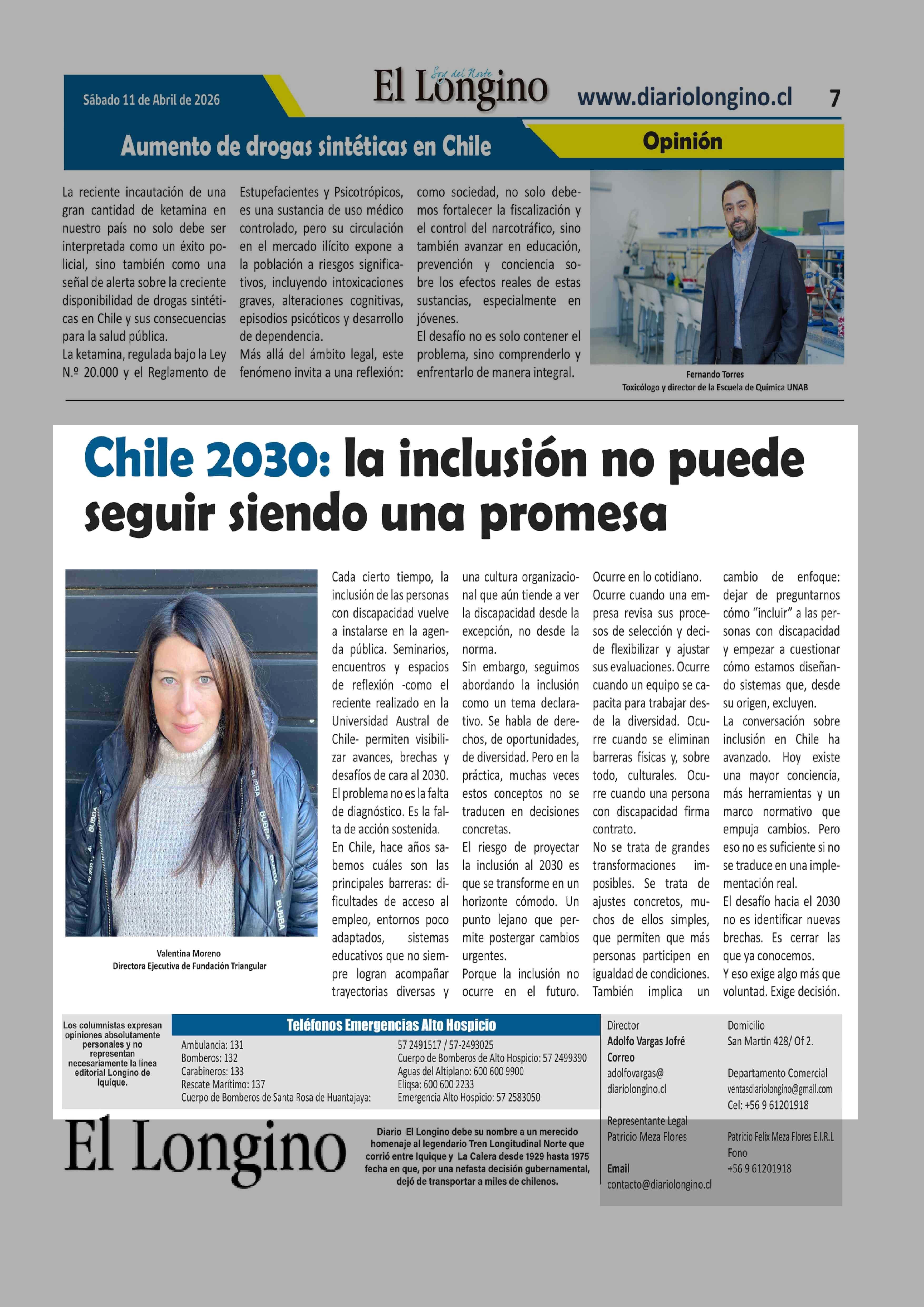 Columnas de Opinión: Chile 2030: la inclusión no puede seguir siendo una promesa 11-04-2026 El Longino |