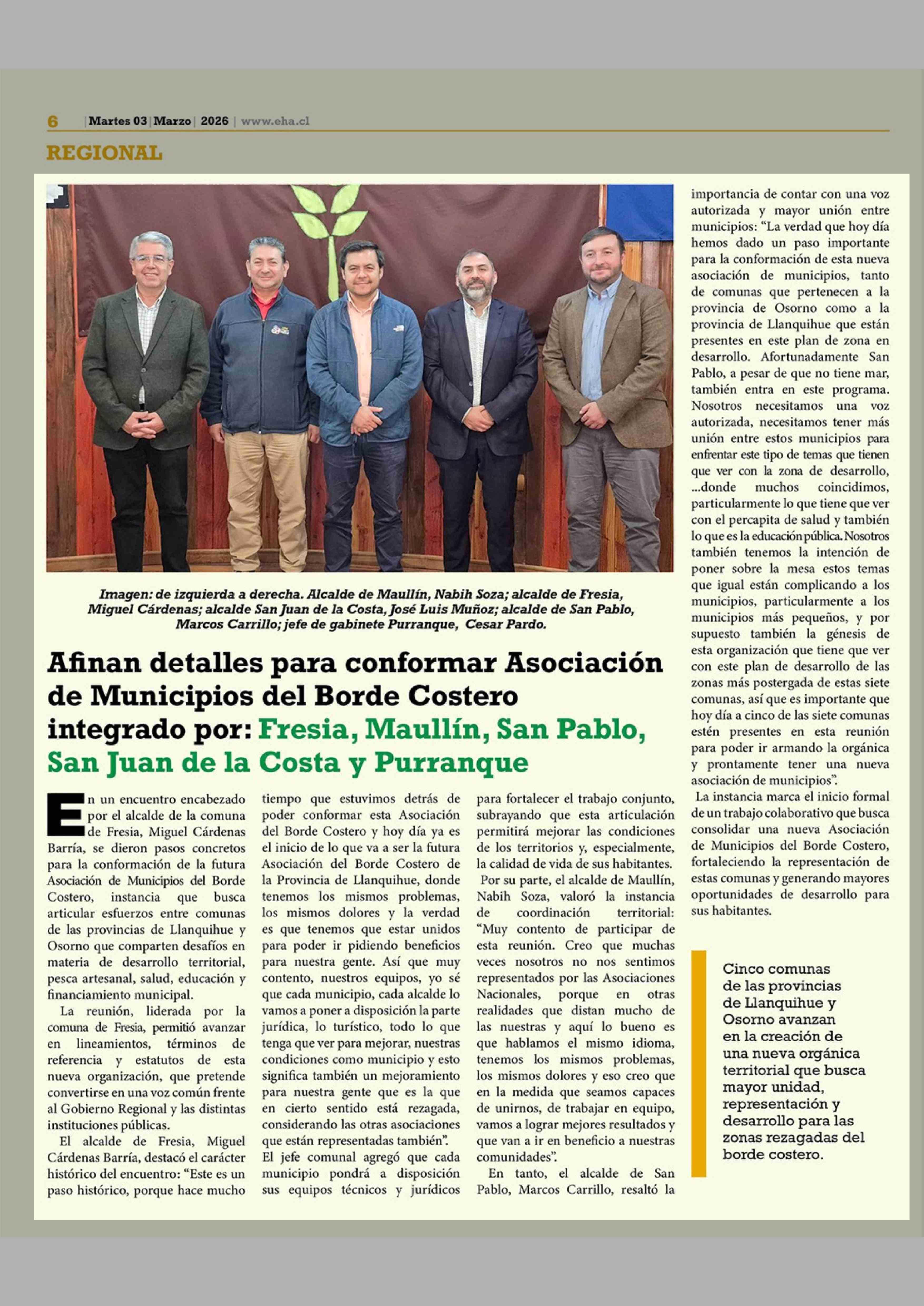 Título: Afinan detalles para conformar Asociación de Municipios del Borde Costero integrado por: Fresia, Maullín, San Pablo, San Juan de la Costa y Purranque
