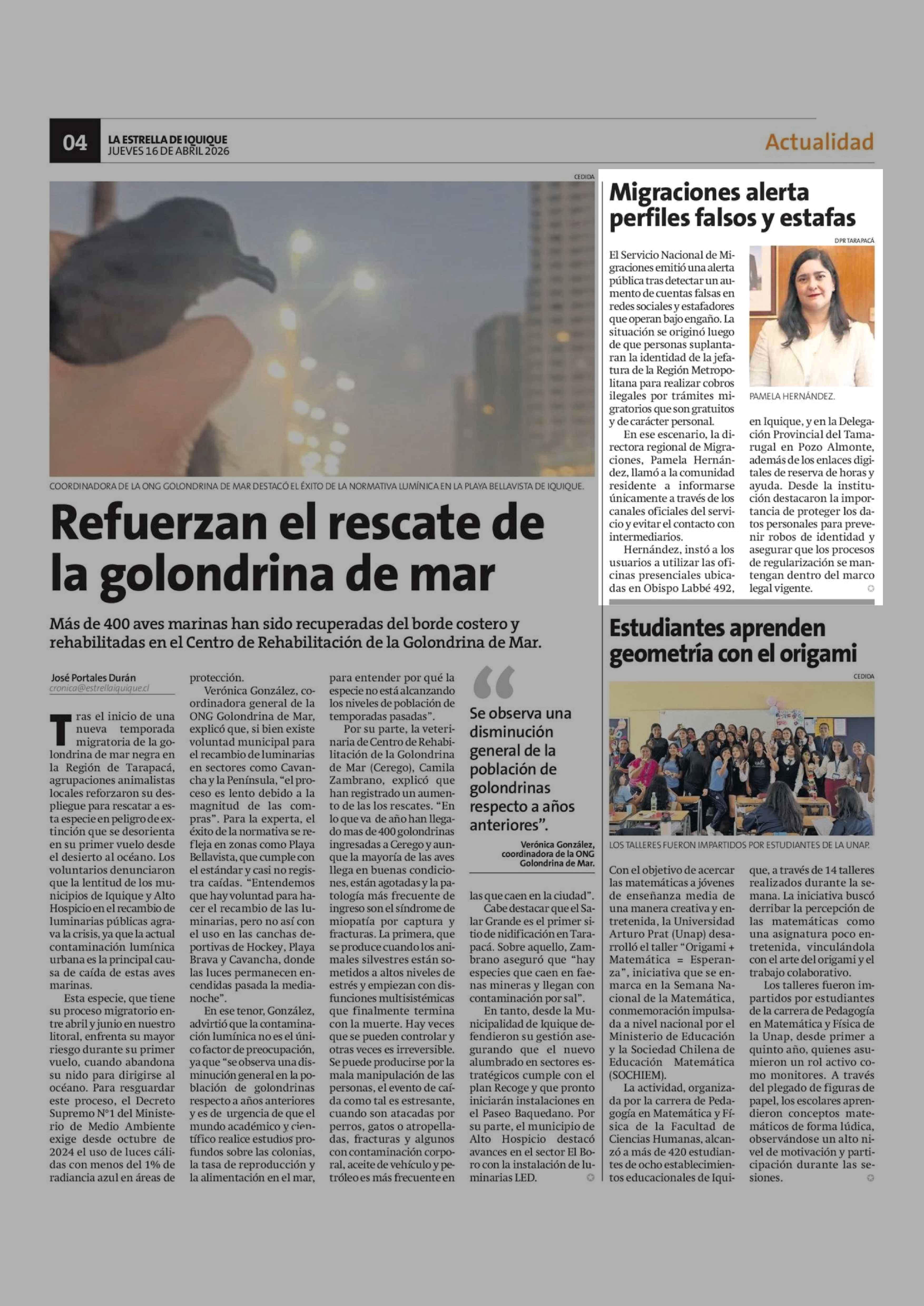 Fecha: 16-04-2026 Sector: Noticia general Región: Región de Tarapacá