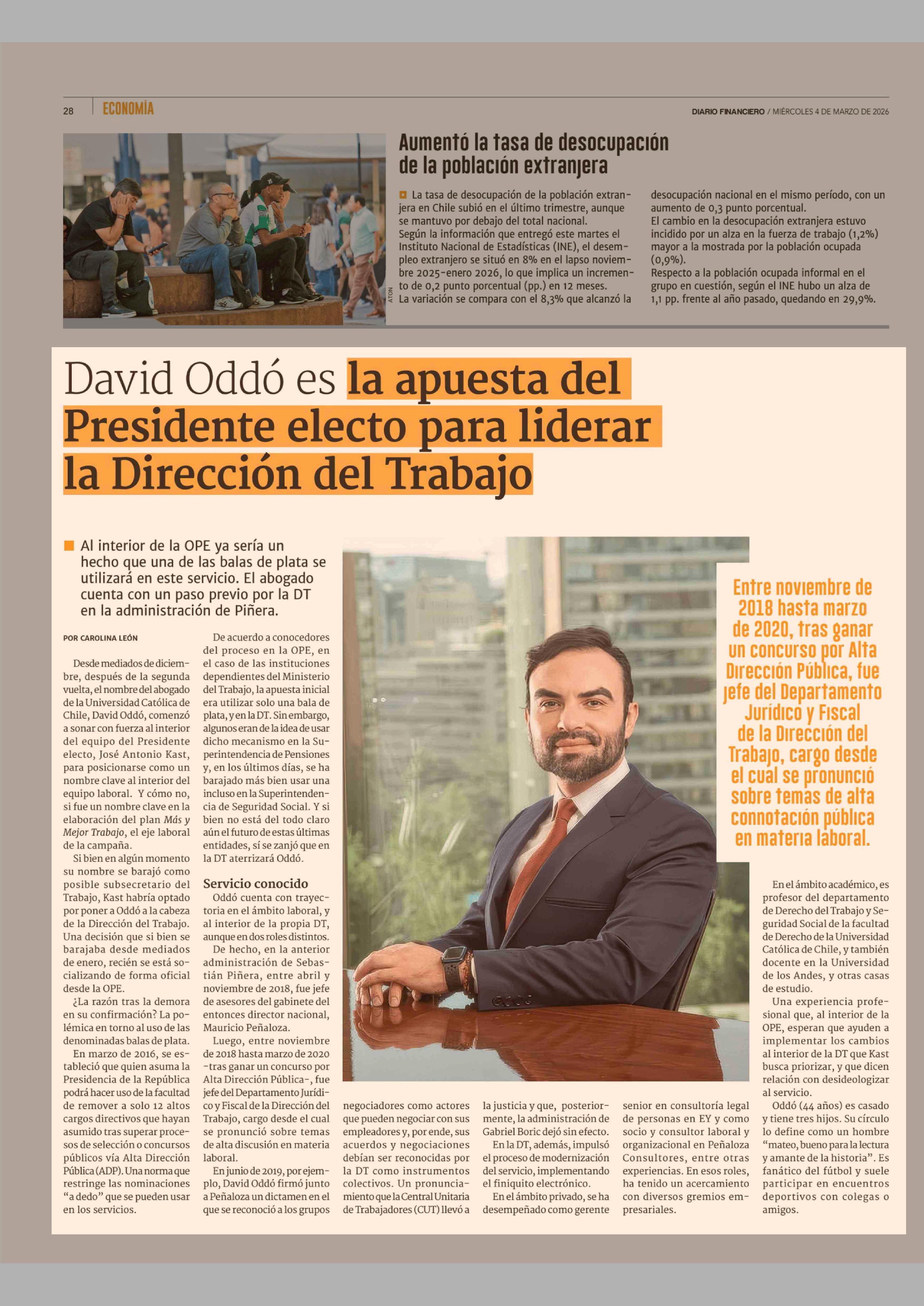 Título: David Oddó es la apuesta del Presidente electo para liderar la Dirección del Trabajo