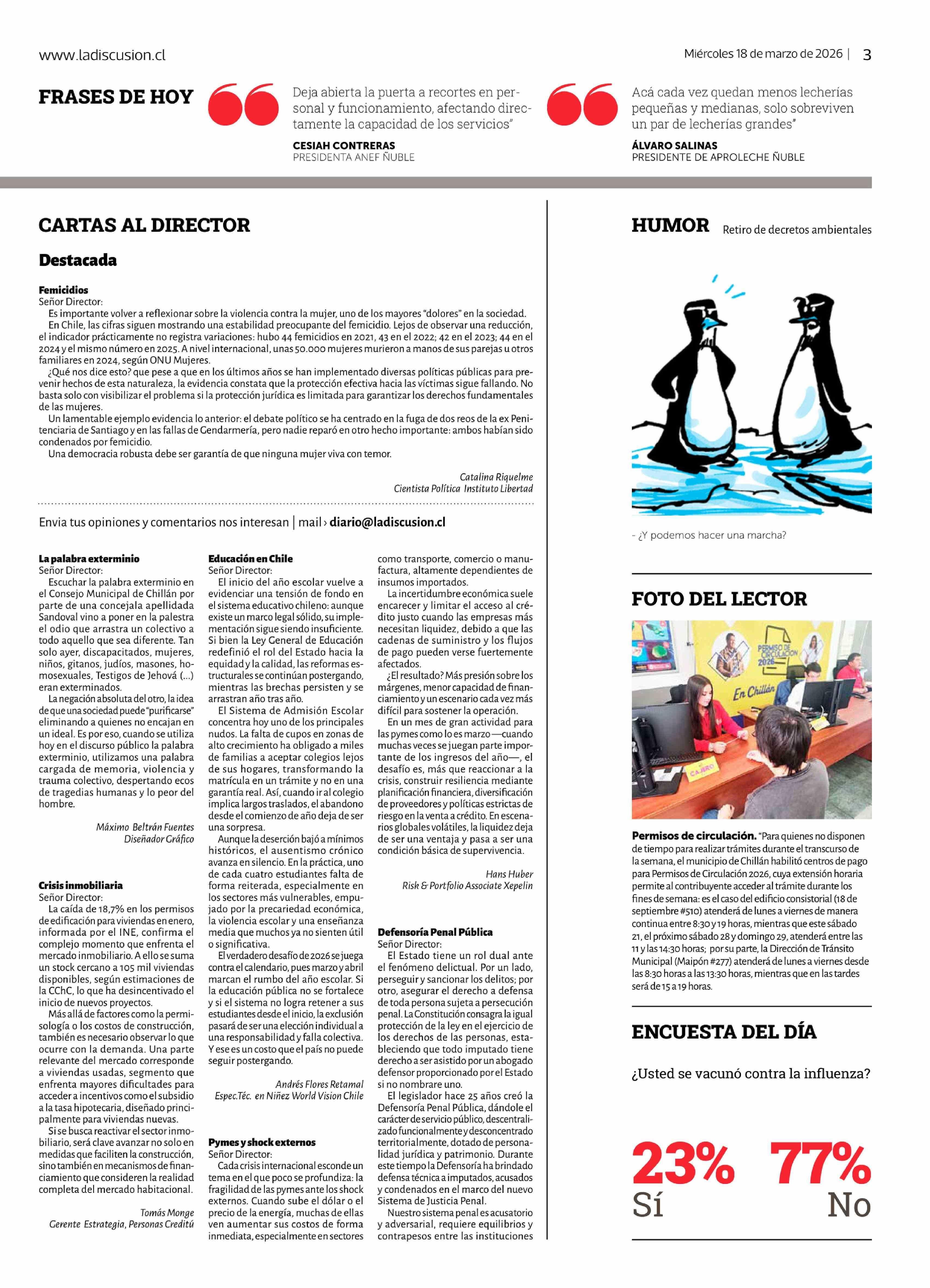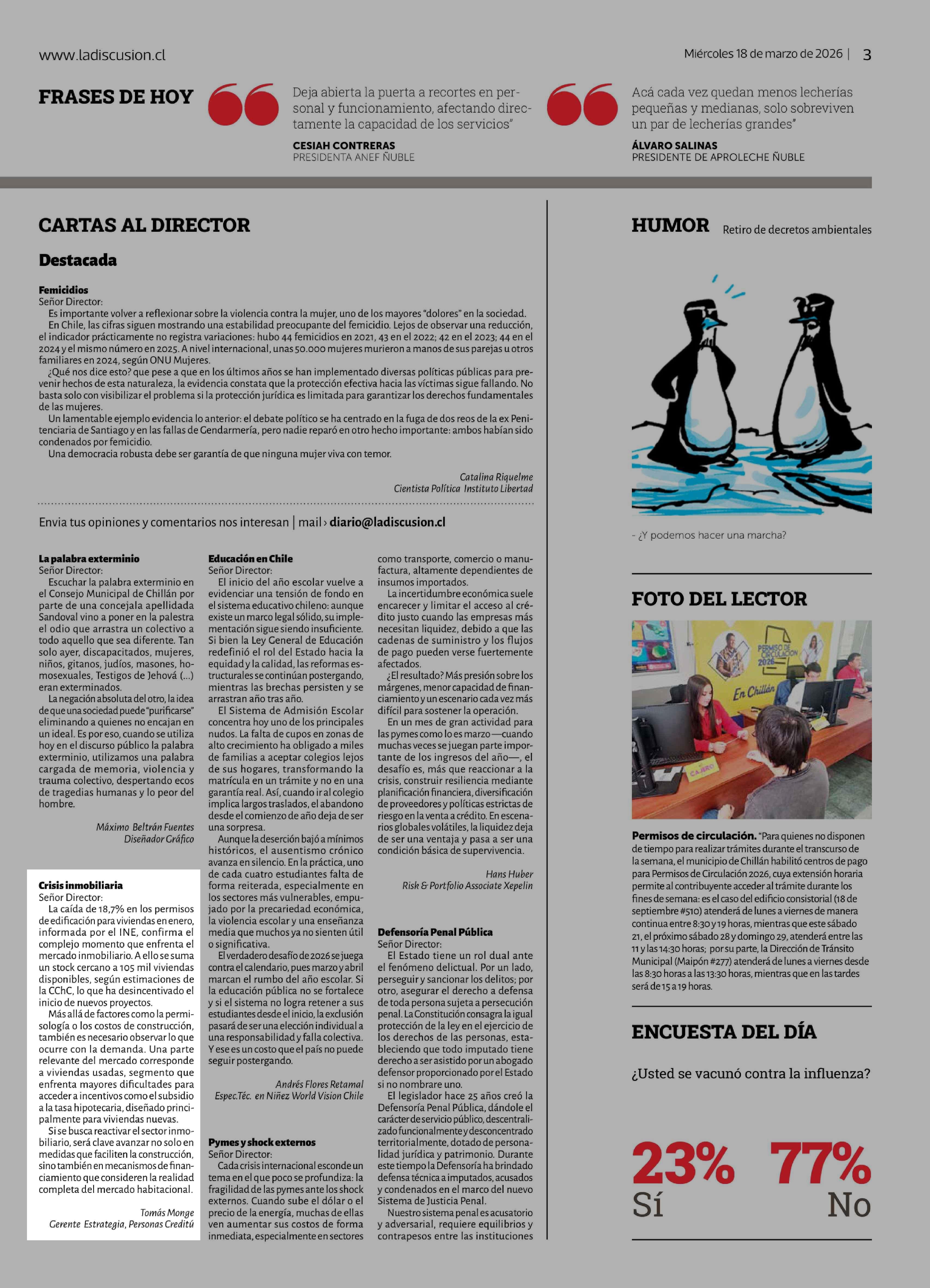| Título: | Cartas: Crisis inmobiliaria Señor Director: La caída de 18,7% en los permisos de edificación para viviendas en enero, informada por el INE, confirma el complejo momento que enfrenta el mercado inmobiliario. A ello se suma un stock cercano a 105 mil viviendas disponibles, según estimaciones de la CCh |