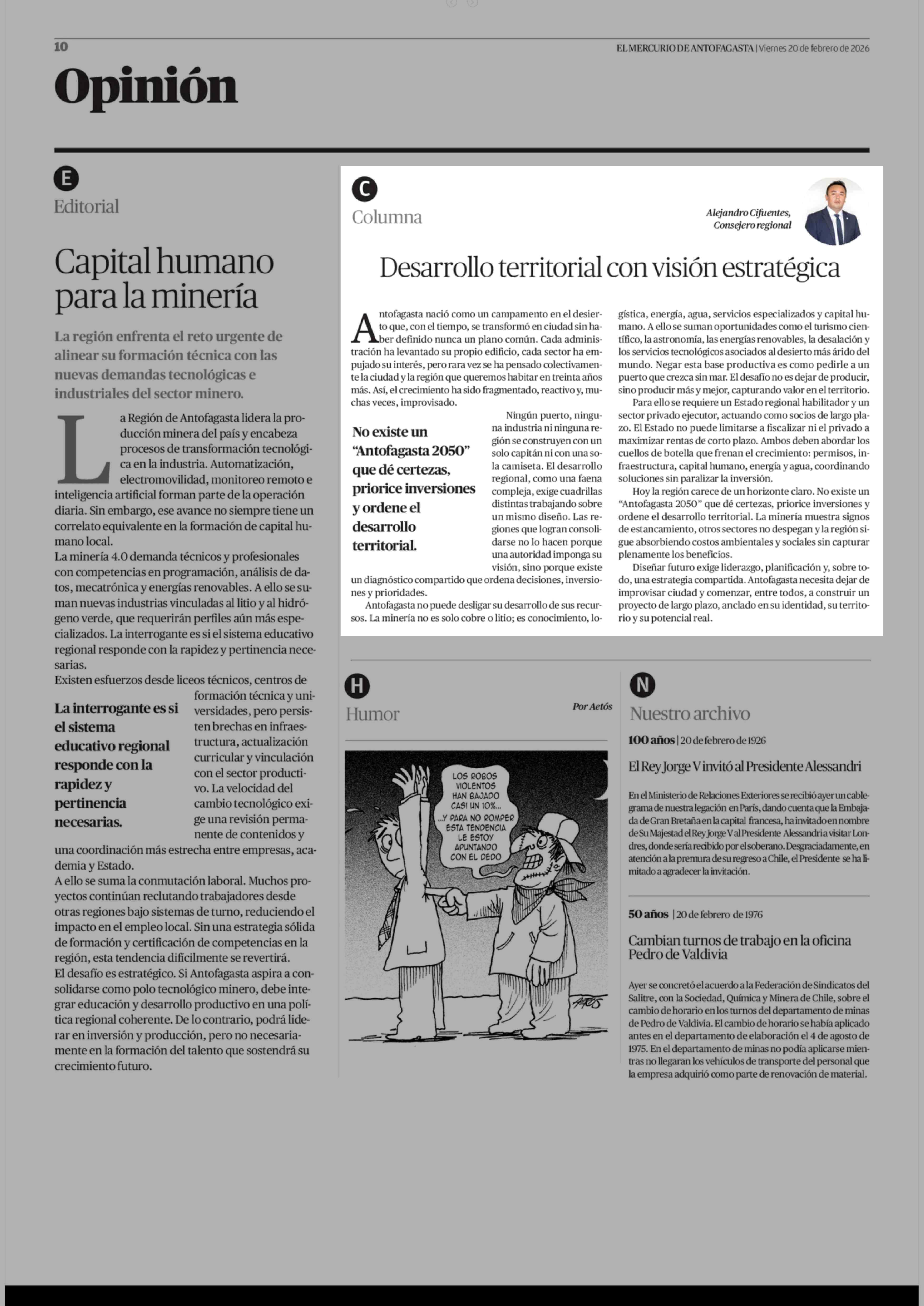 Fecha: 20-02-2026 Sector: Columnas de Opinión Región: Región de Antofagasta