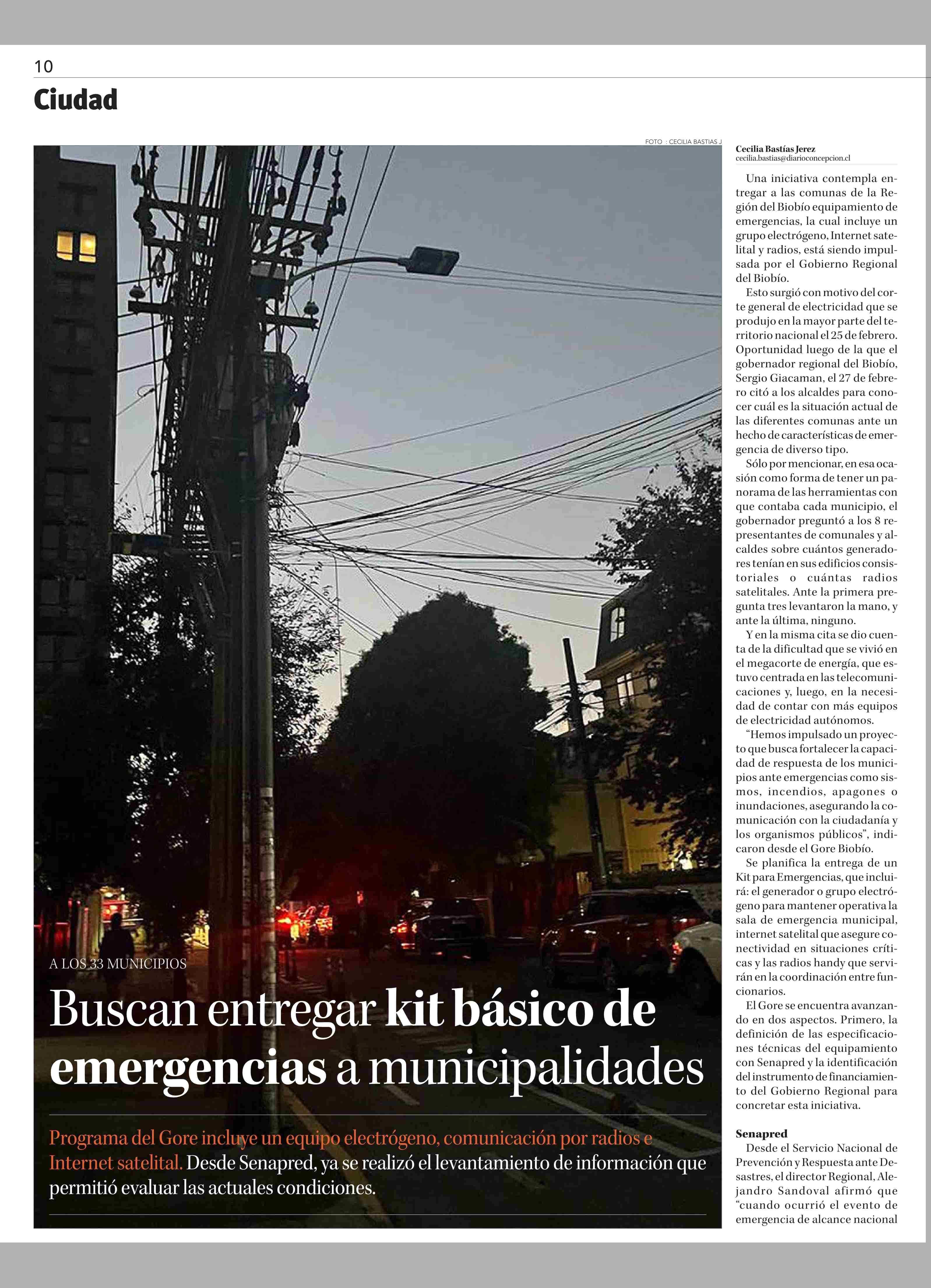 Buscan entregar kit básico de emergencias a municipalidades 06-04-2025 Diario Concepción |