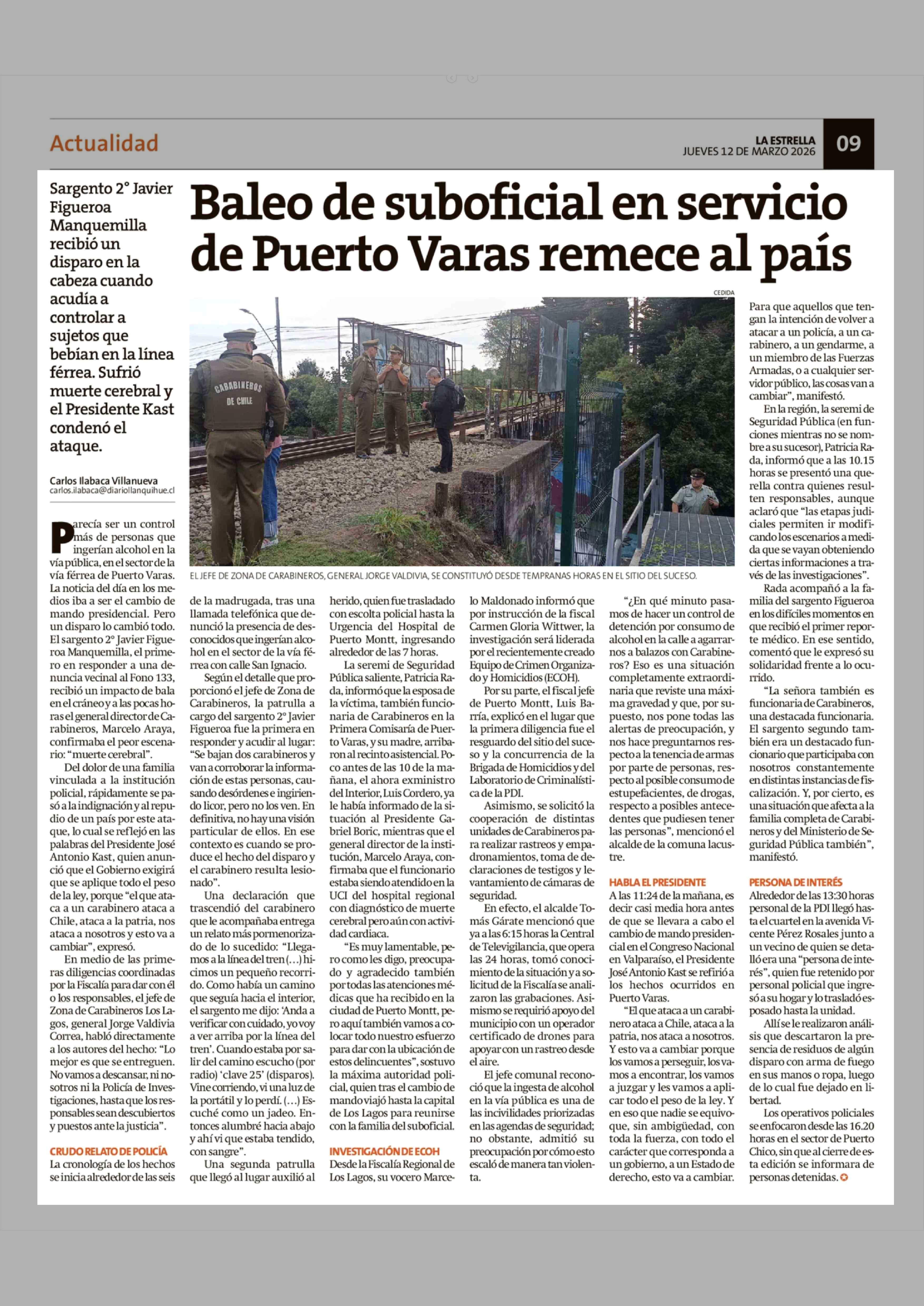 Título: Baleo de suboficial en servicio de Puerto Varas remece al país