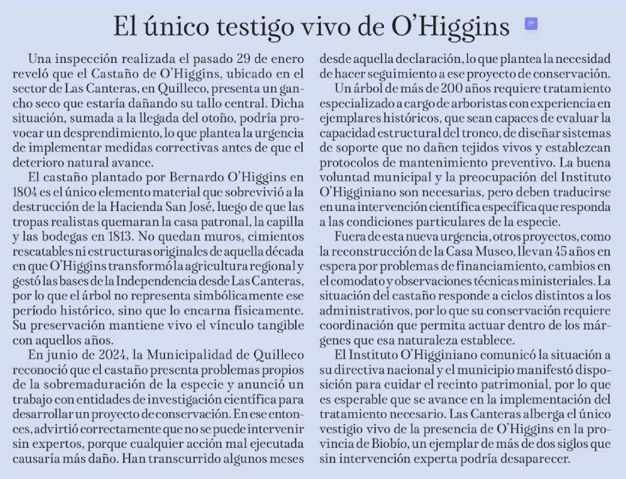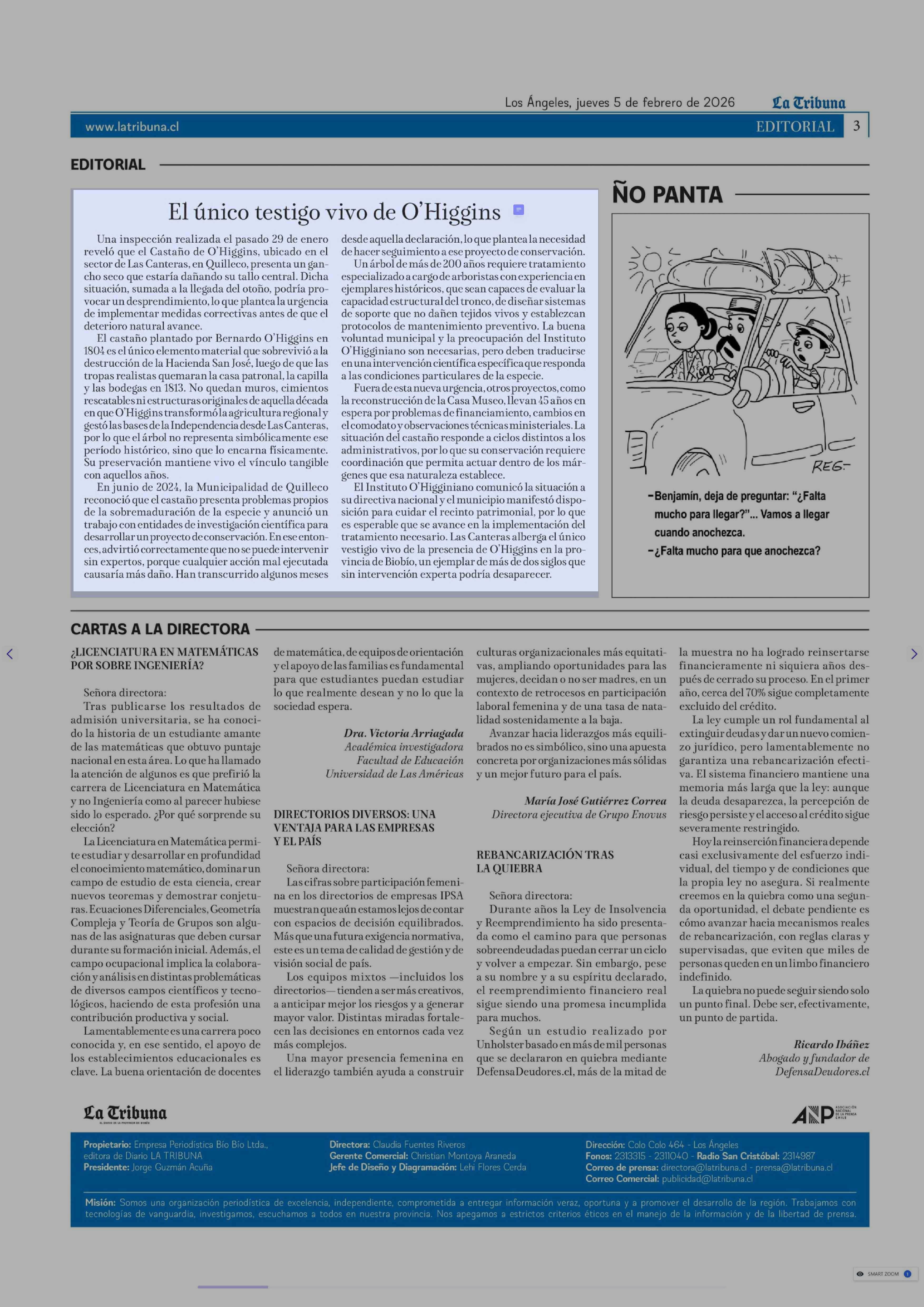 Editorial: El único testigo vivo de O'Higgins 05-02-2026 La Tribuna |