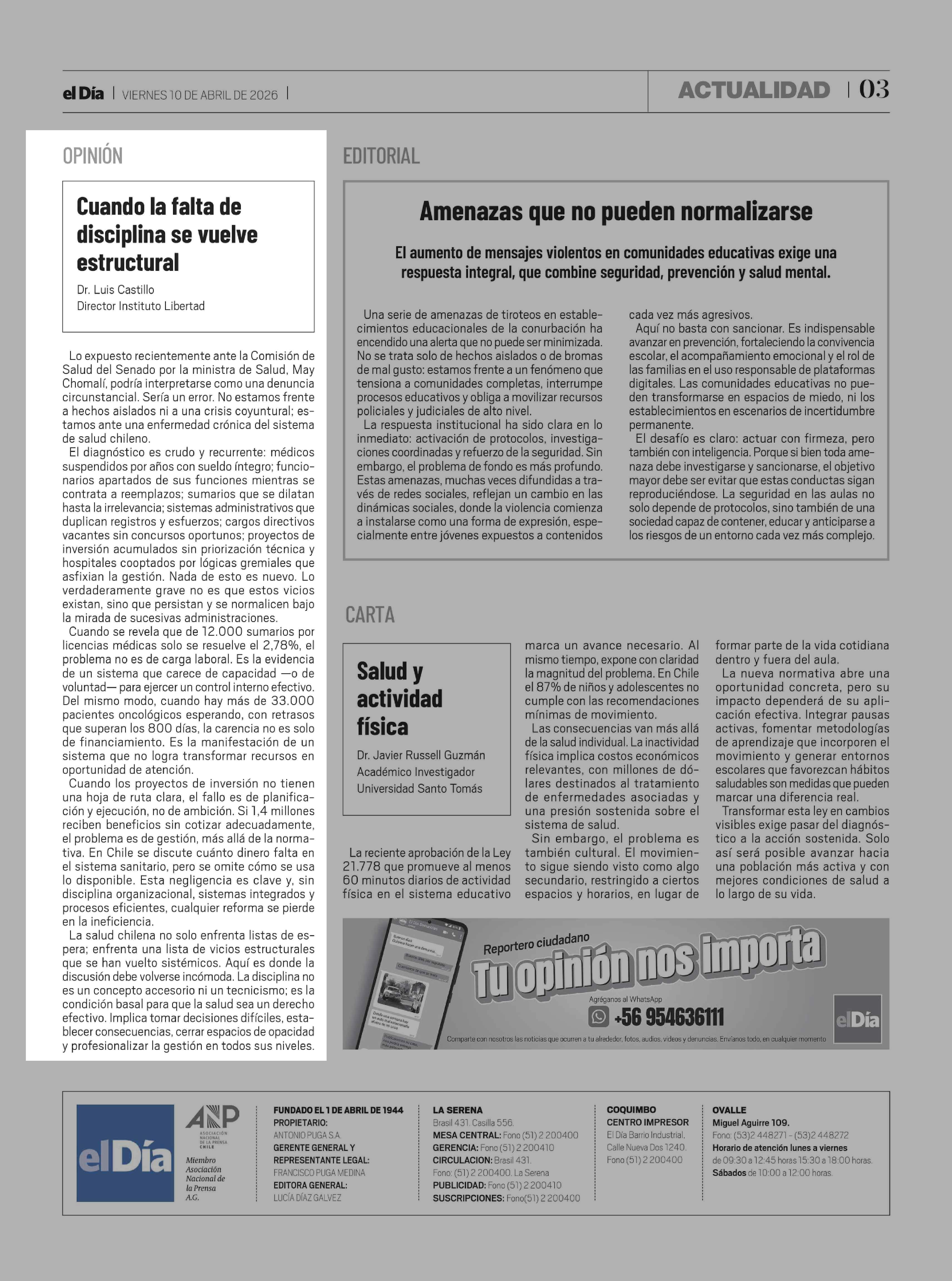 Fecha: 10-04-2026 Sector: Columnas de Opinión Región: Región de Coquimbo
