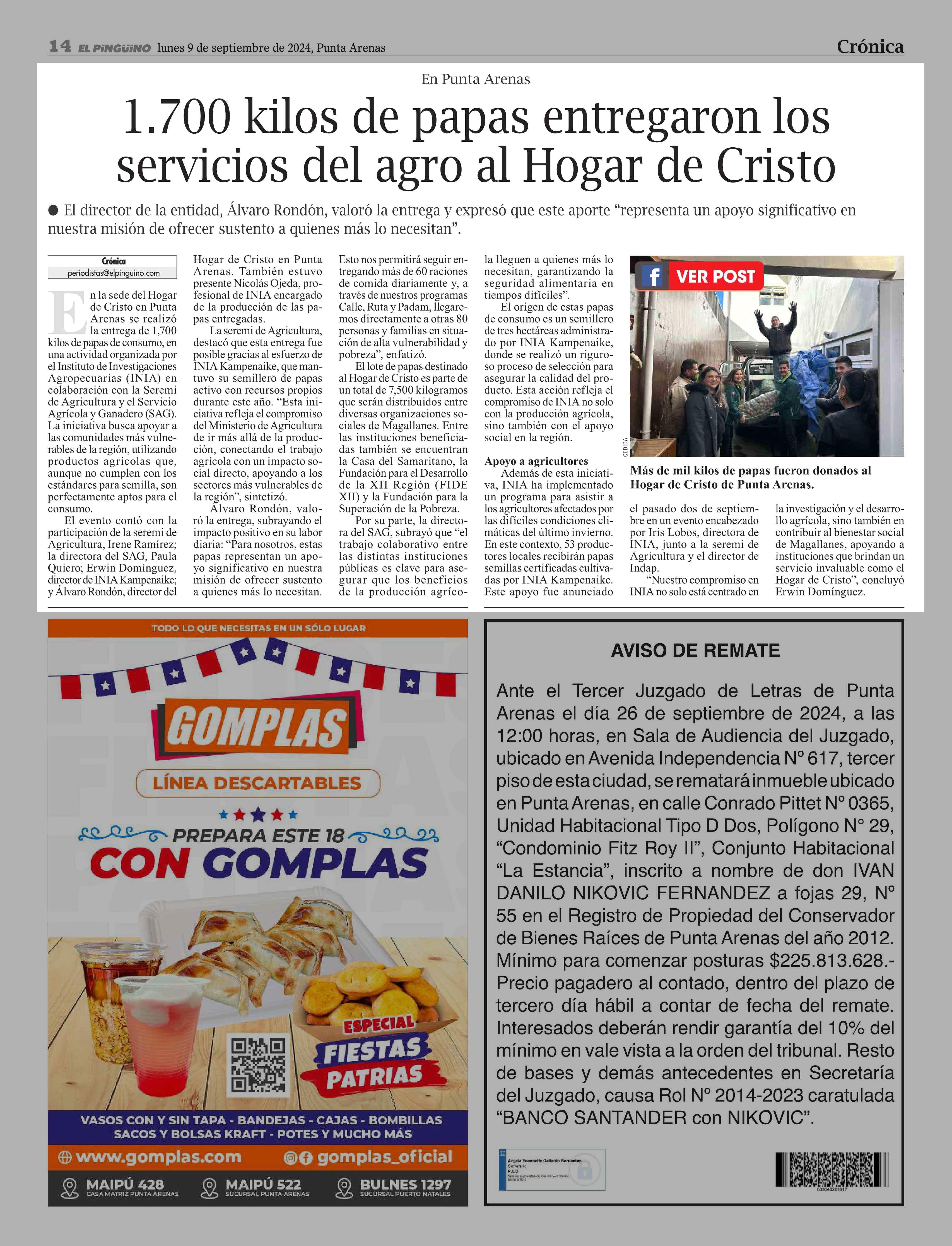 Fecha: 09-09-2024 Sector: Noticia general Región: Región de Magallanes y de la Antártica Chilena