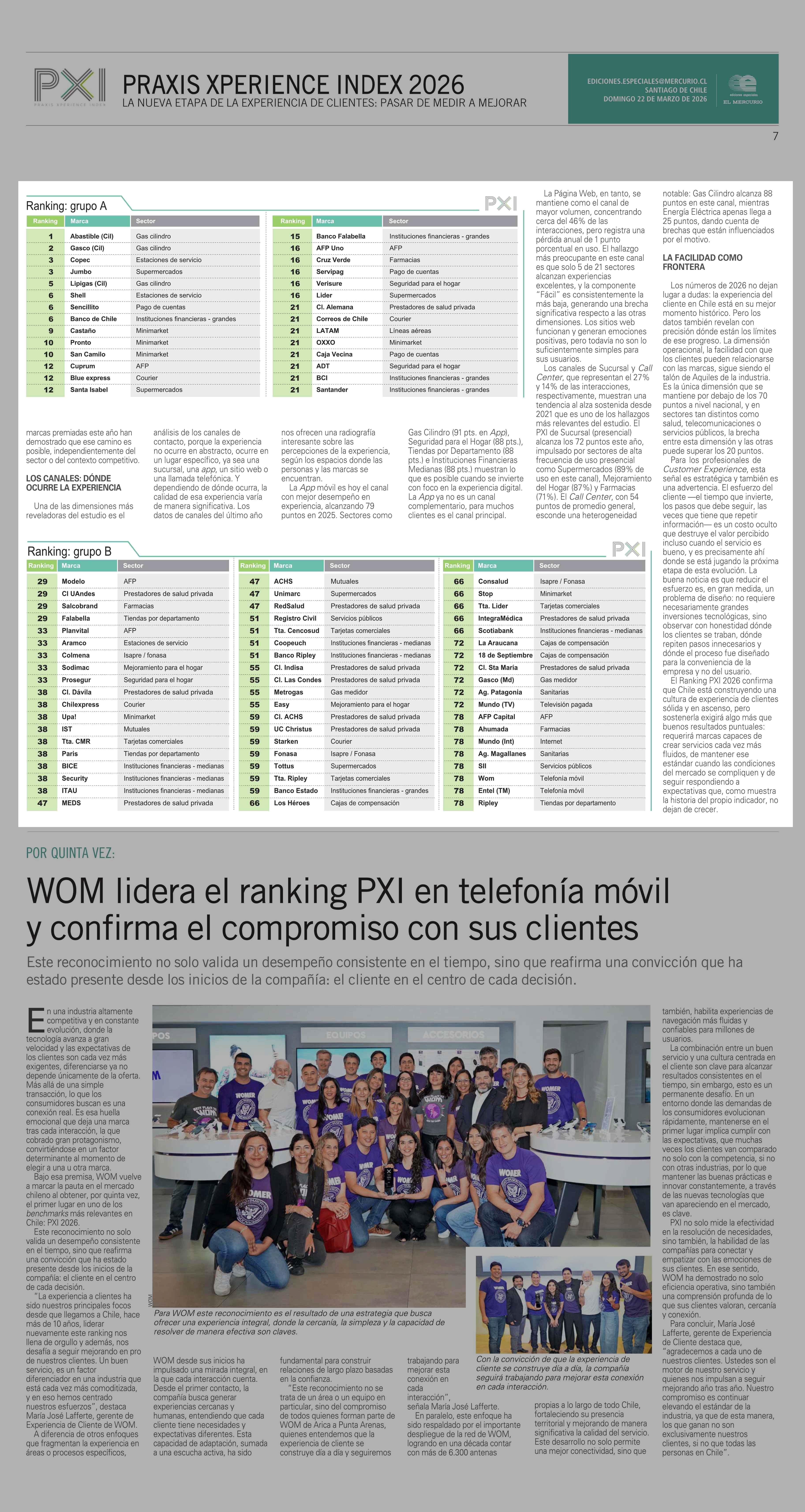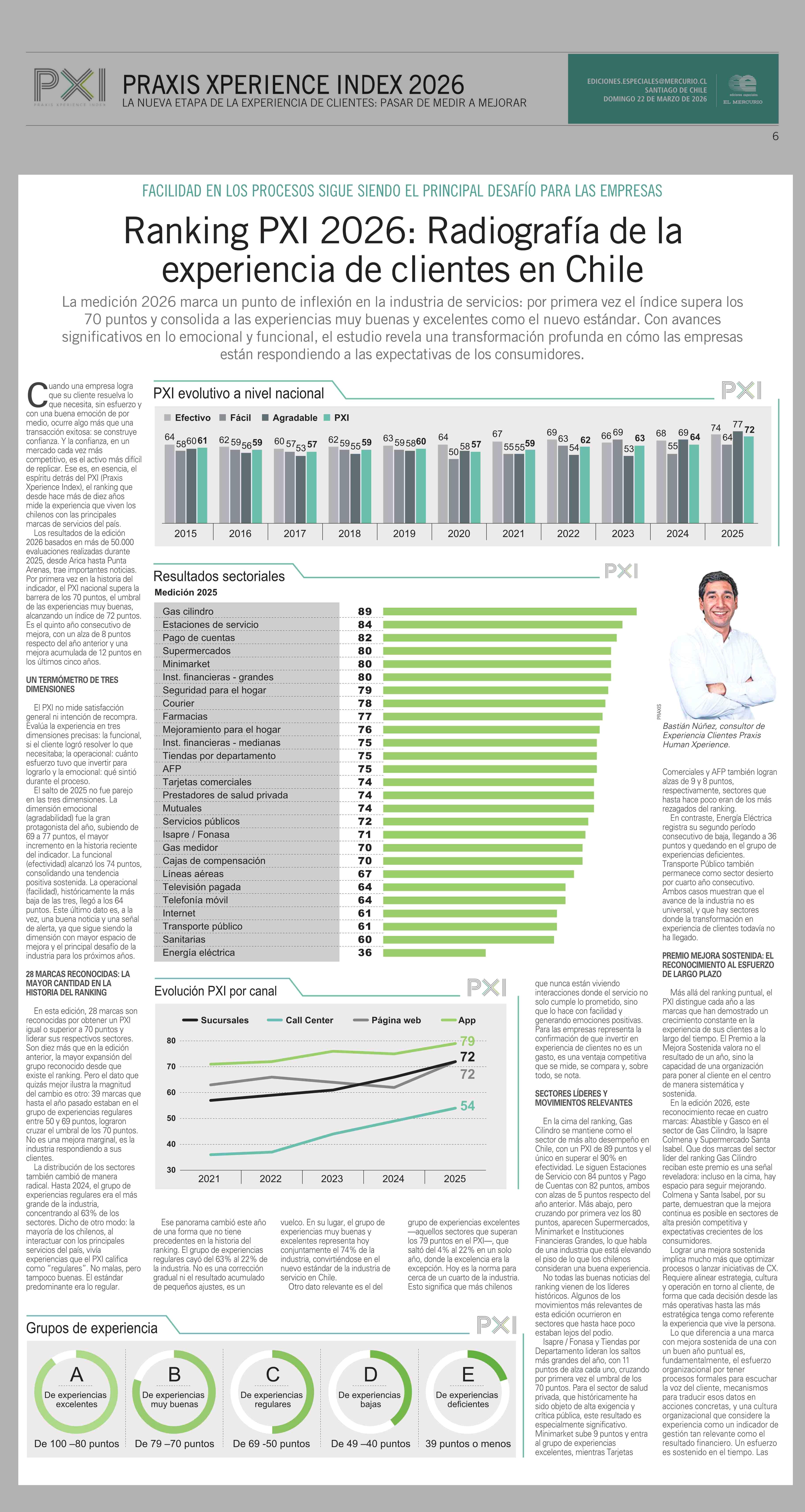 Ranking PXI 2026: Radiografía de la experiencia de clientes en Chile 22-03-2026 El Mercurio |