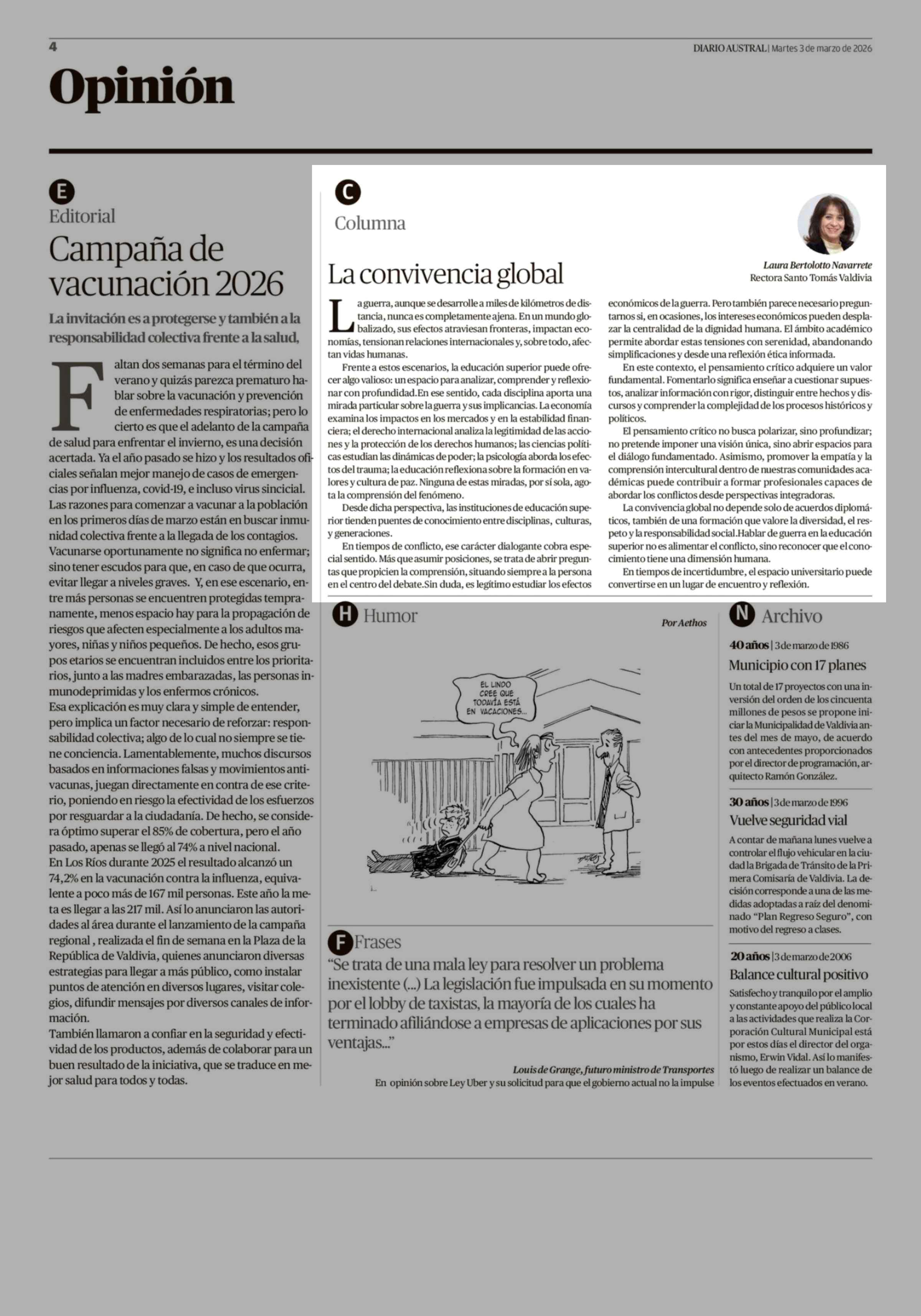 Fecha: 03-03-2026 Sector: Columnas de Opinión Región: Región de Los Ríos