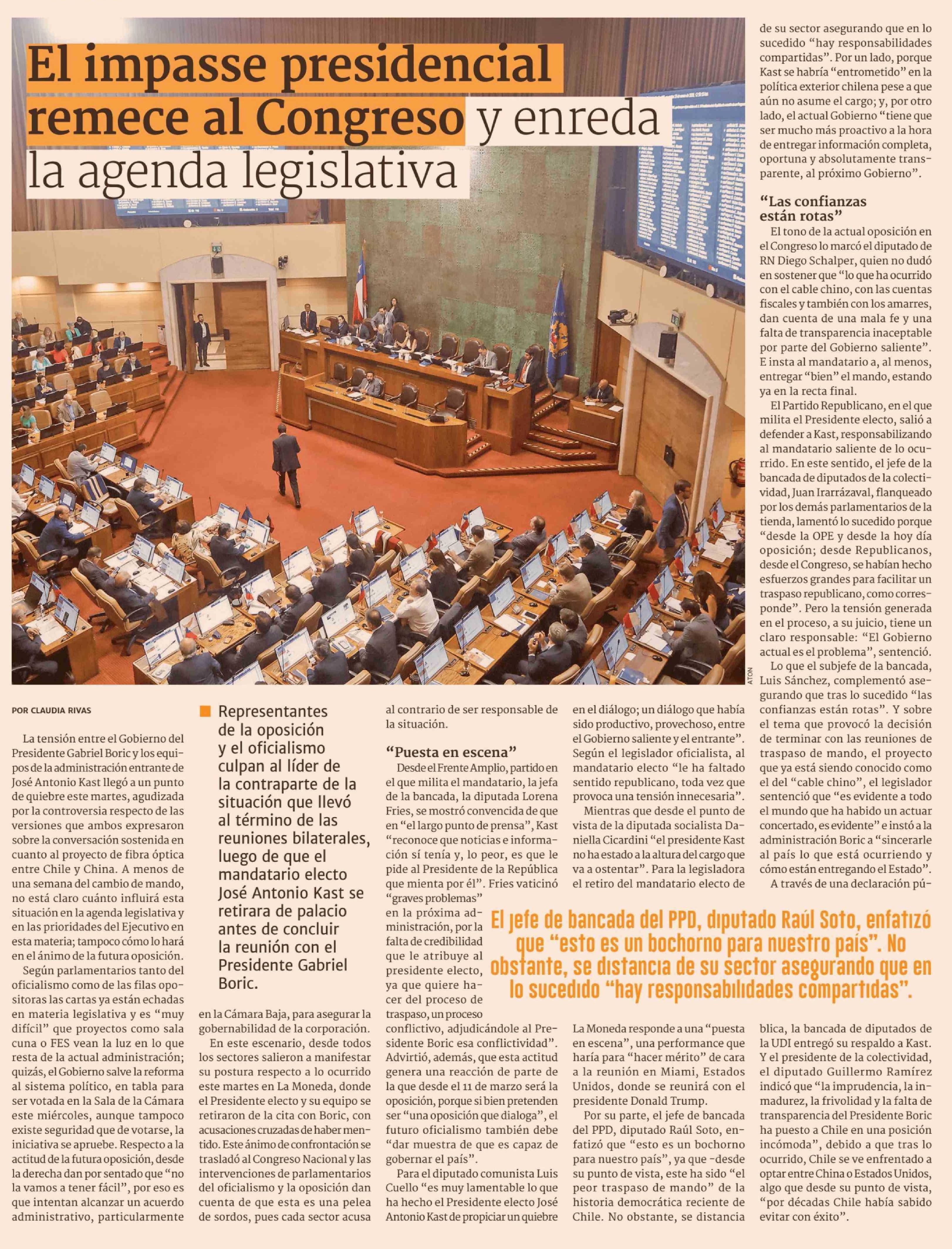 Título: El impasse presidencial remece al Congreso y enreda la agenda legislativa