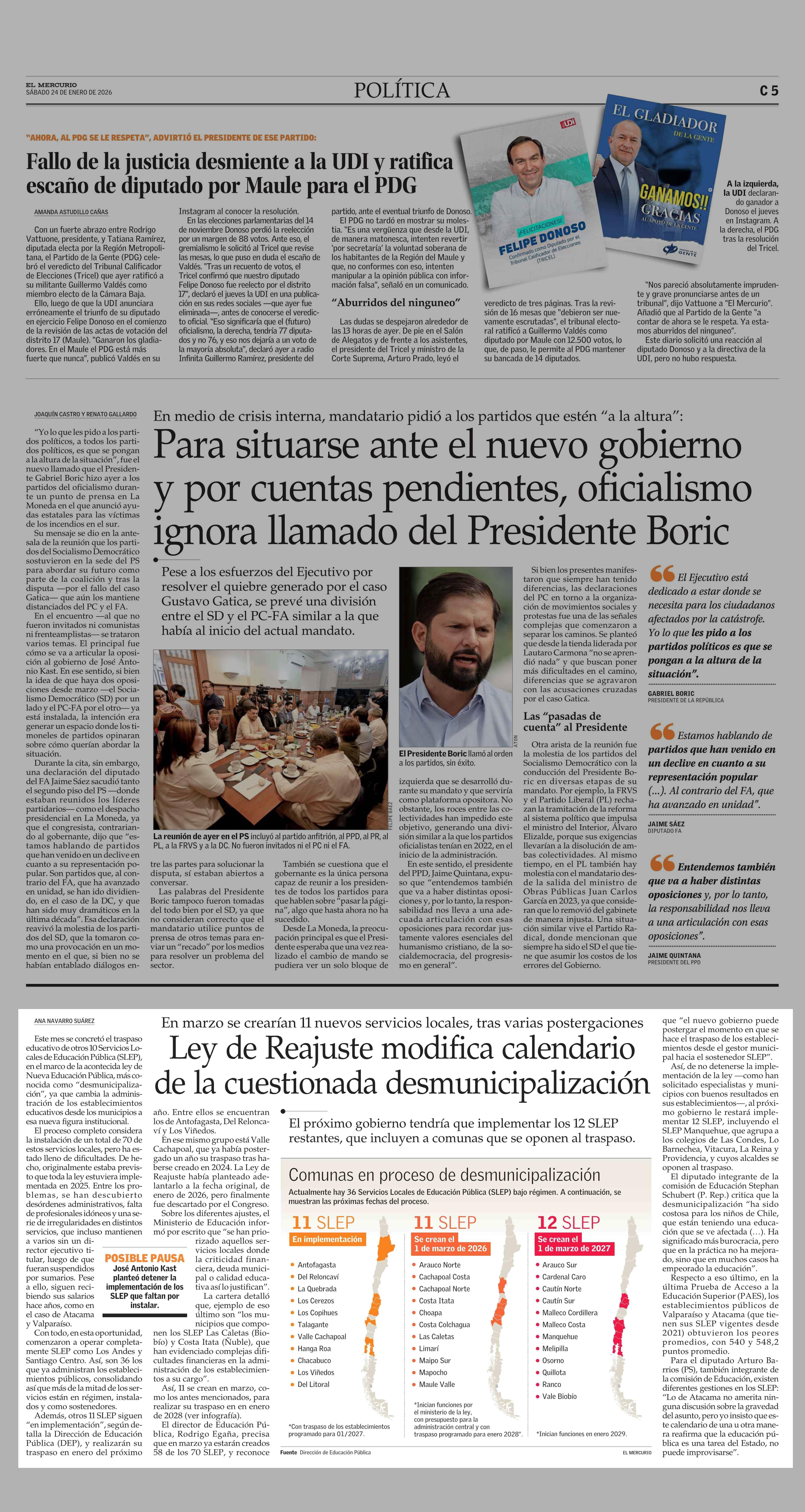 Ley de Reajuste modifica calendario de la cuestionada desmunicipalización 24-01-2026 El Mercurio |