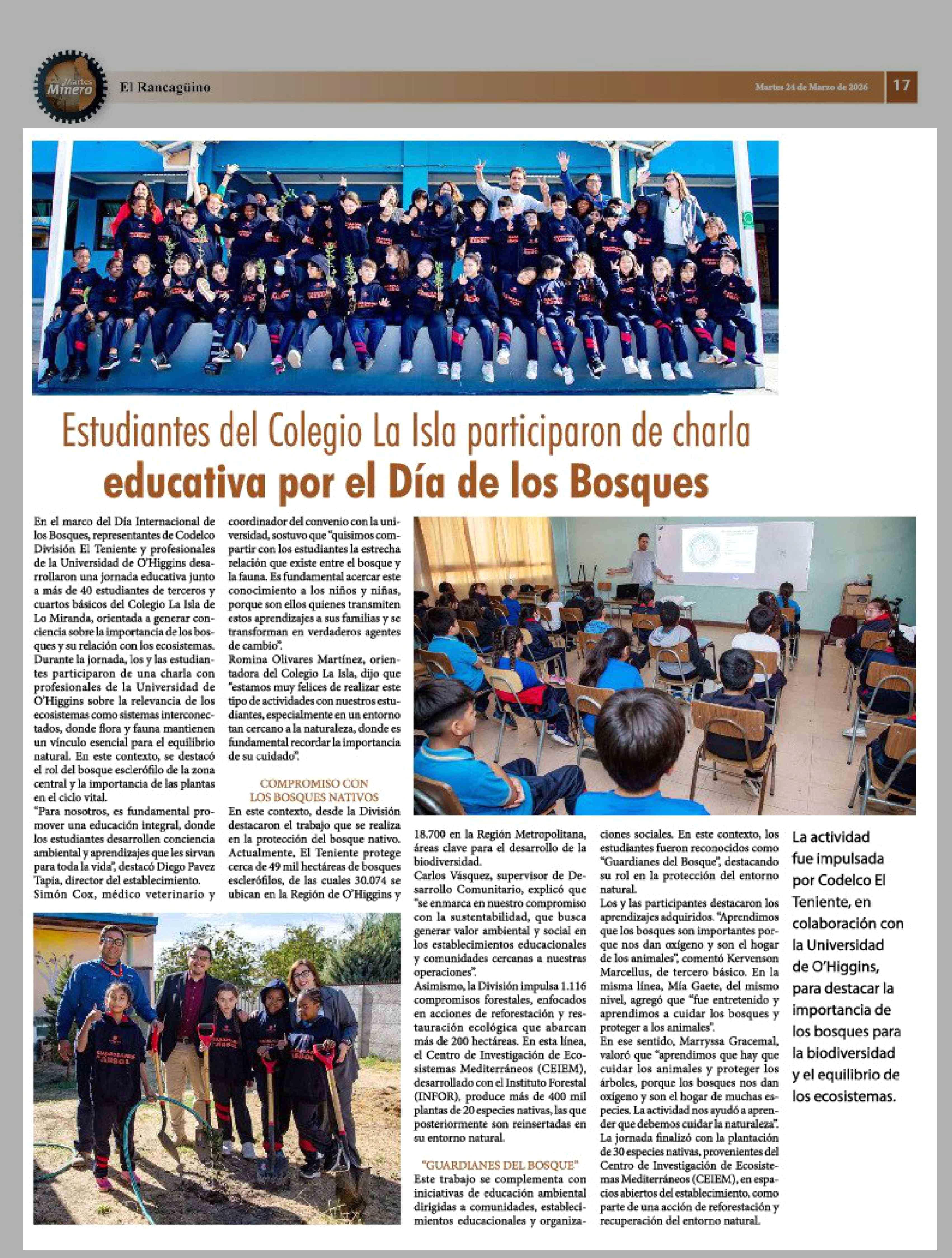 Título: Estudiantes del Colegio La Isla participaron de charla educativa por el Día de los Bosques