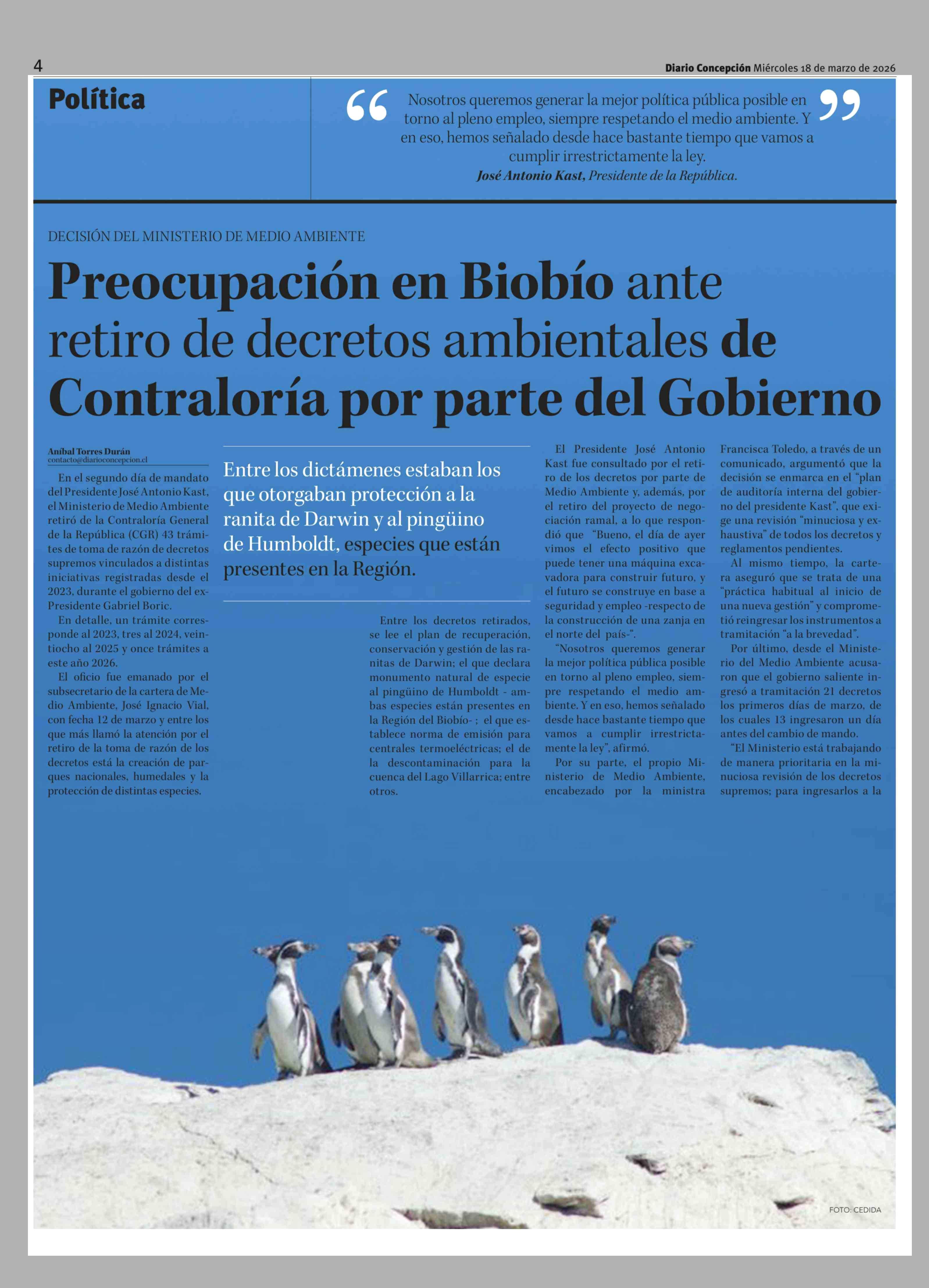 Título: Preocupación en Biobío ante retiro de decretos ambientales de Contraloría por parte del Gobierno