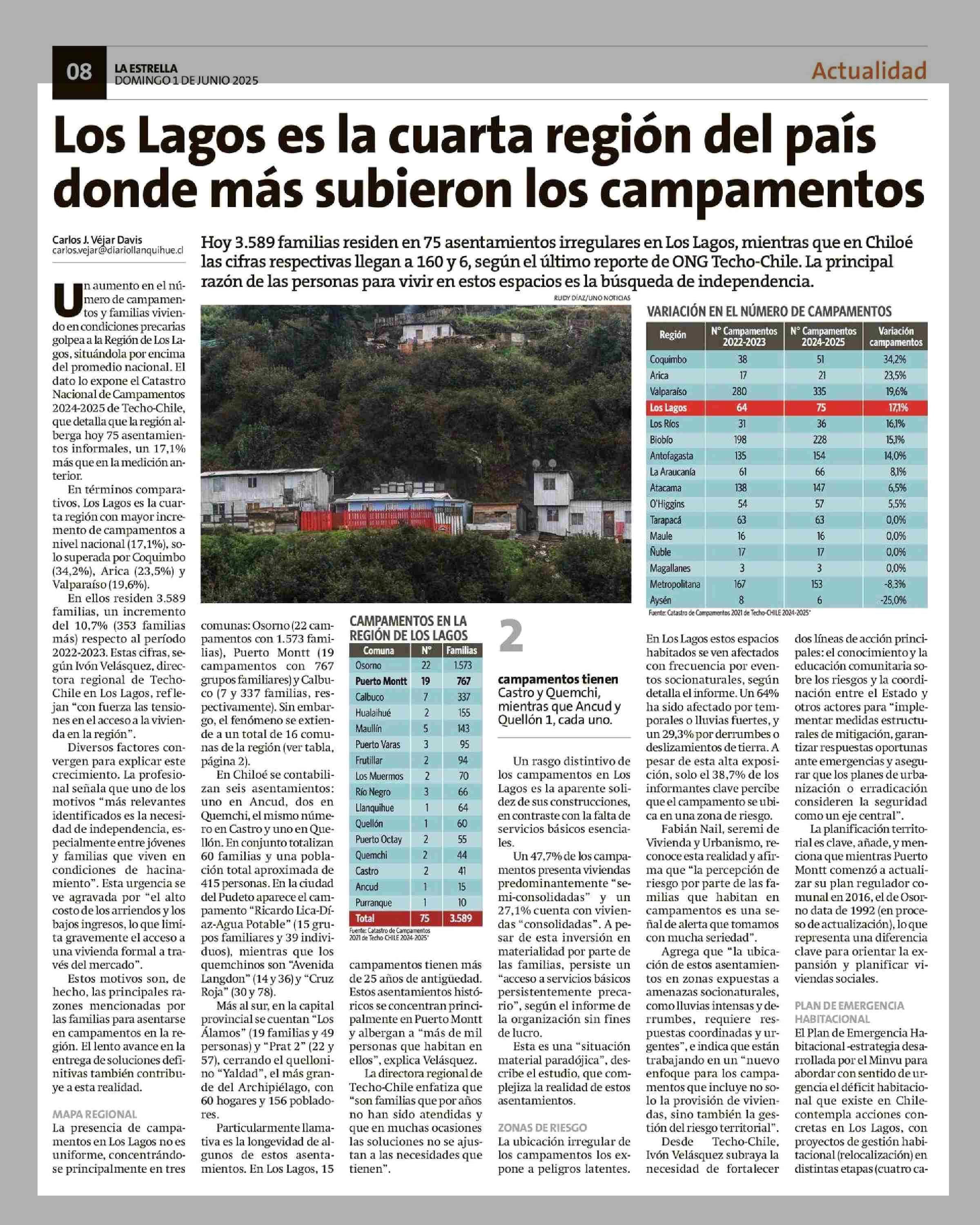 Los Lagos es la cuarta región del país donde más subieron los campamentos 01-06-2025 La Estrella de Chiloé |