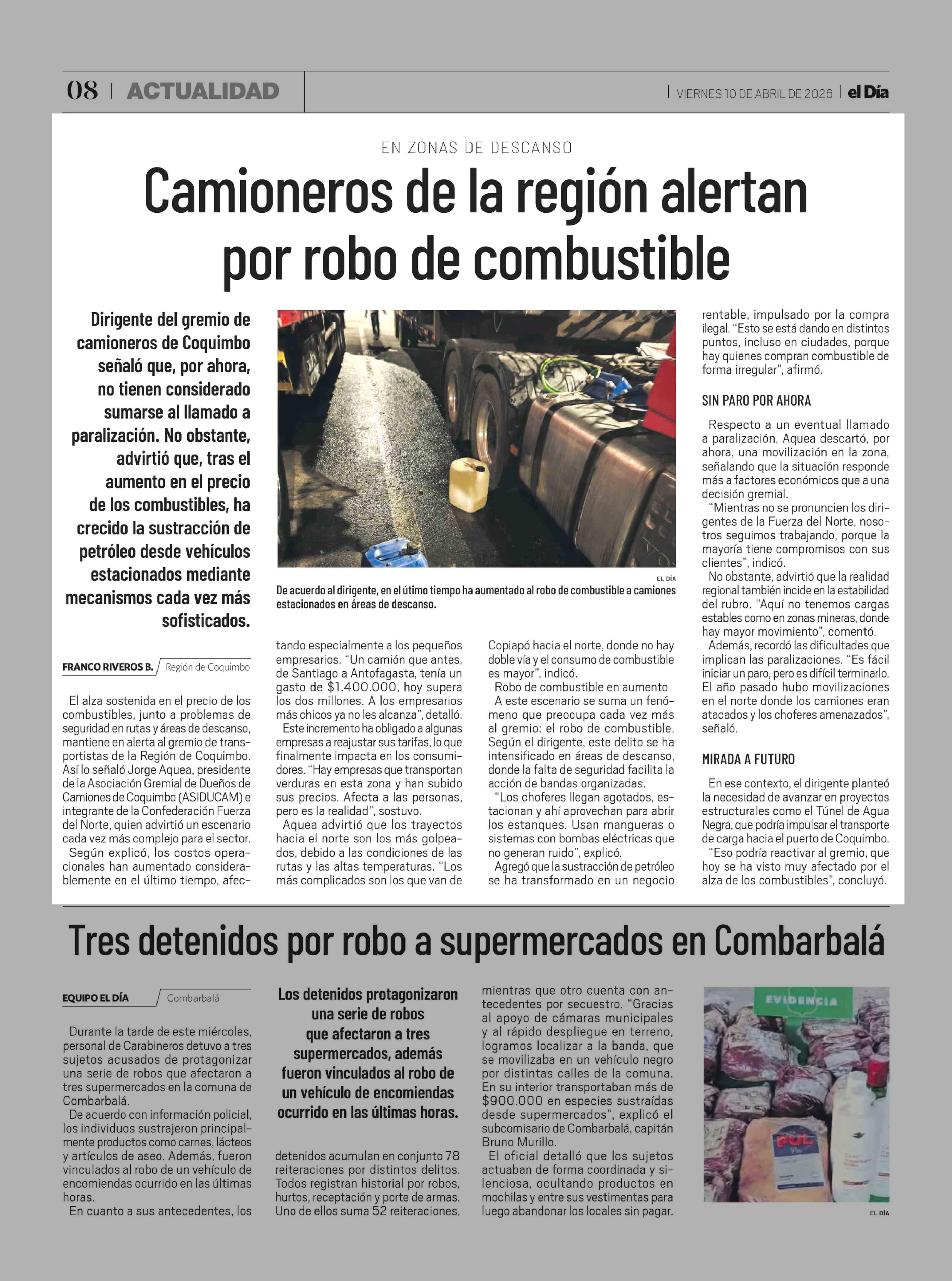 Camioneros de la región alertan por robo de combustible 10-04-2026 El Día |