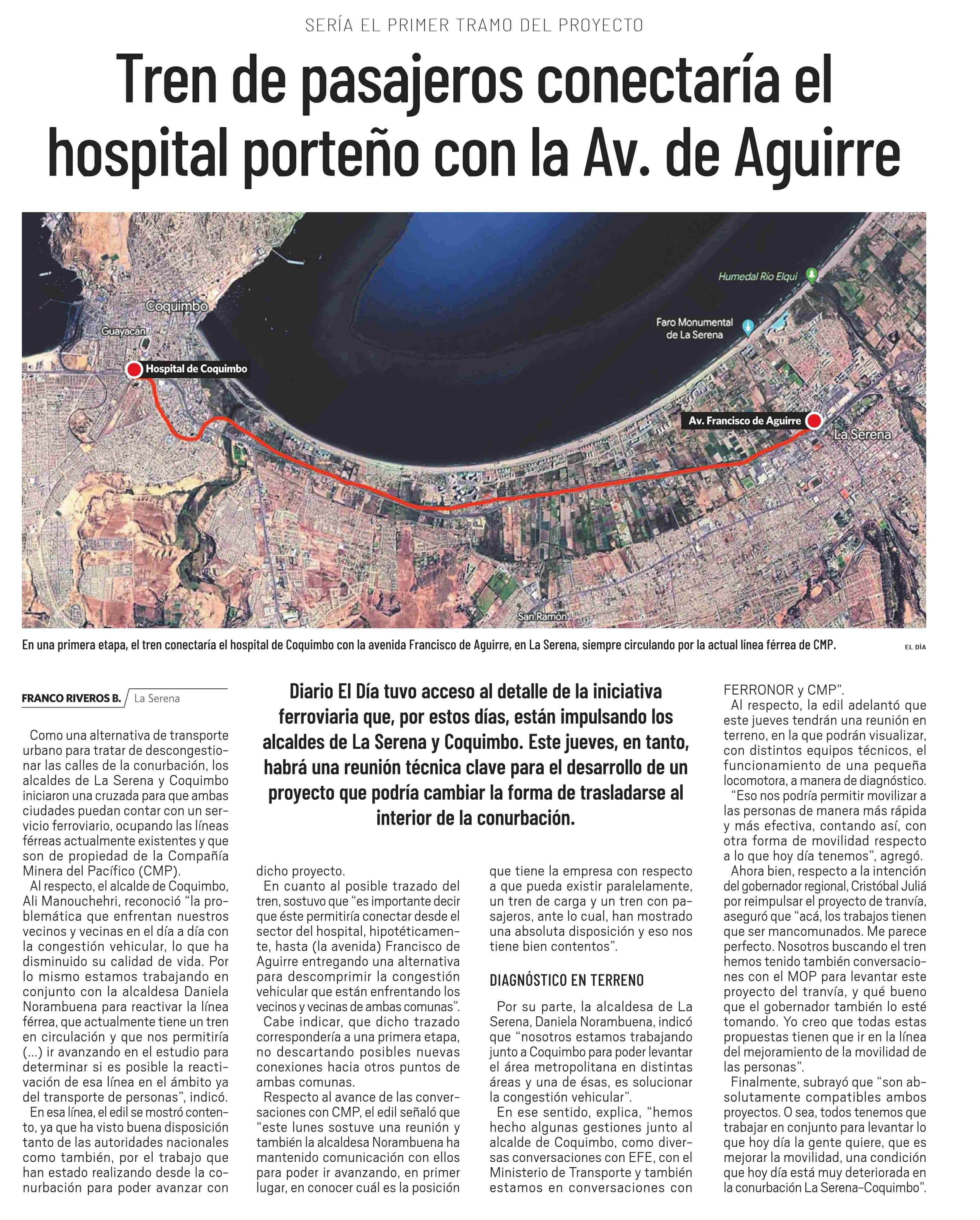 Título: Tren de pasajeros conectaría el hospital porteño con la Av. de Aguirre