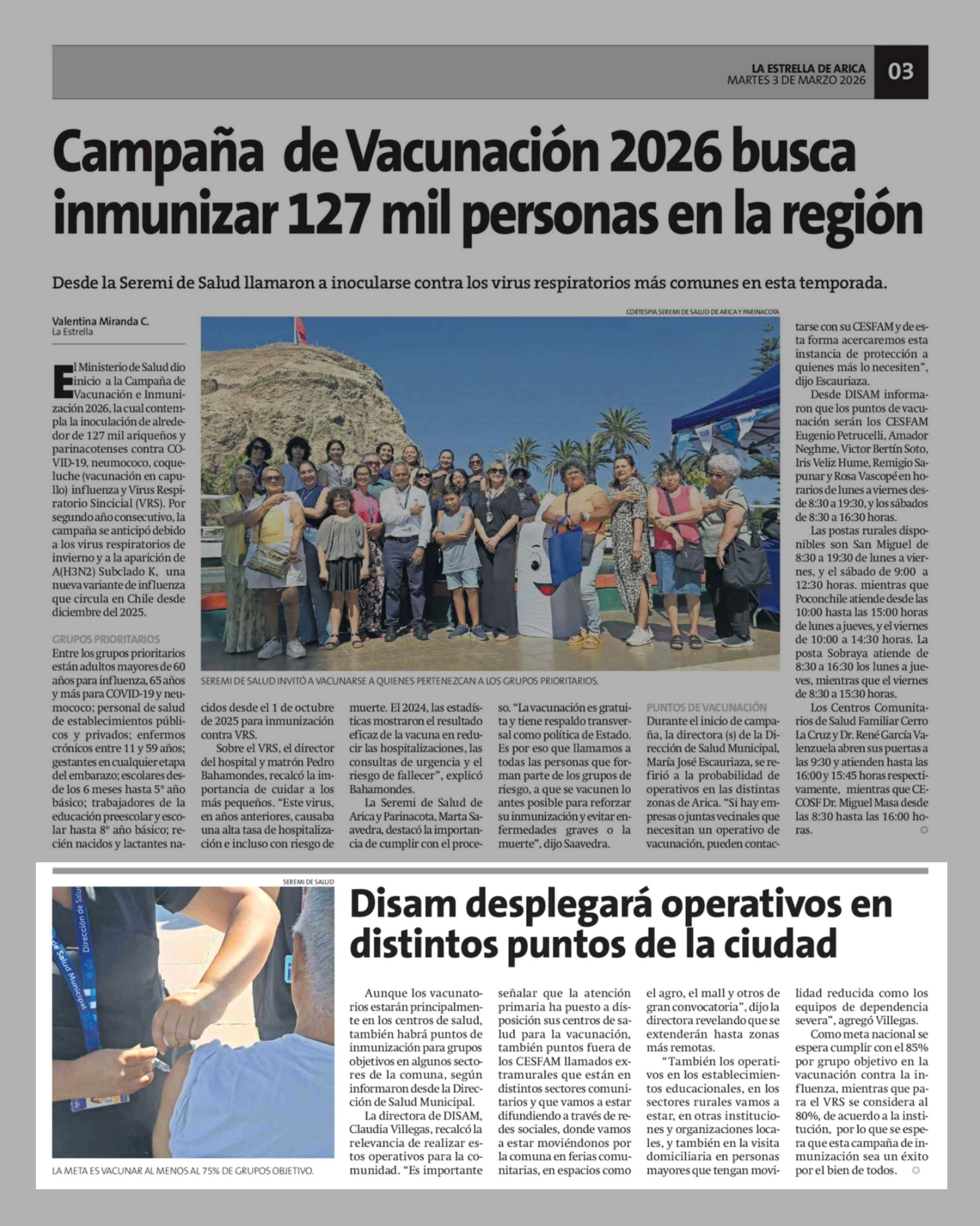 Disam desplegará operativos en distintos puntos de la ciudad 03-03-2026 La Estrella de Arica |