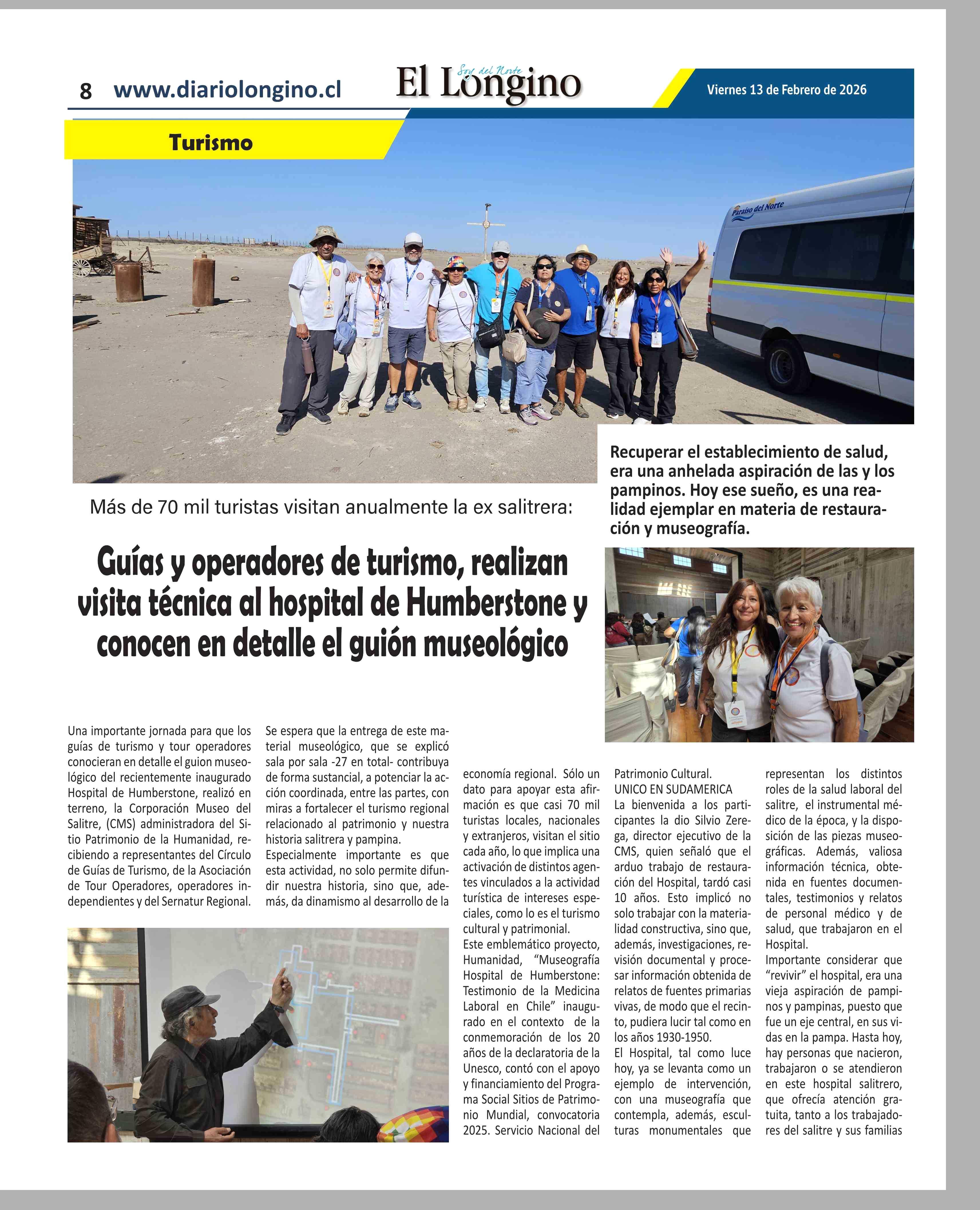 Guías y operadores de turismo, realizan visita técnica al hospital de Humberstone y conocen en detalle el guión museológico 13-02-2026 El Longino |
