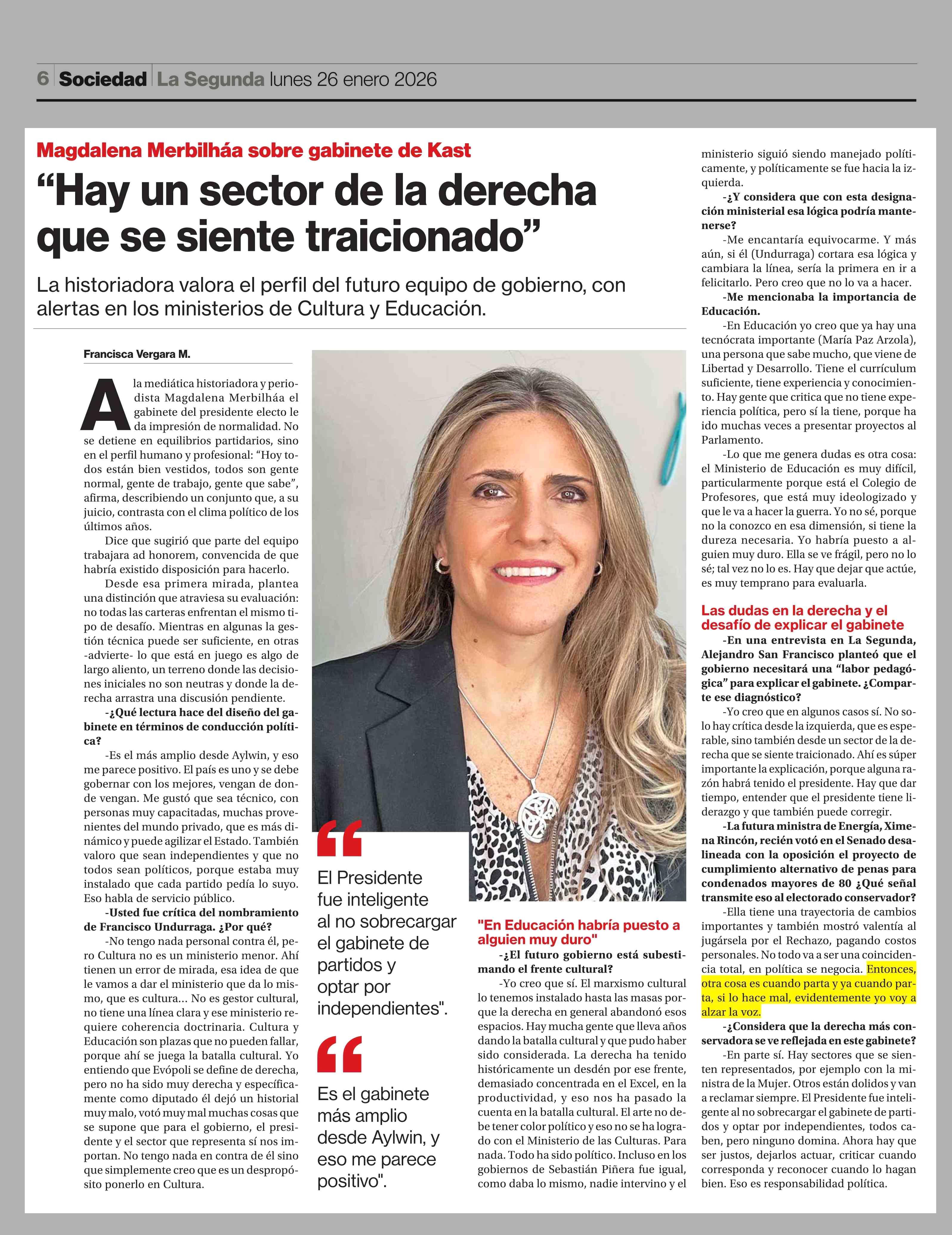 "Hay un sector de la derecha que se siente traicionado" 26-01-2026 La Segunda |