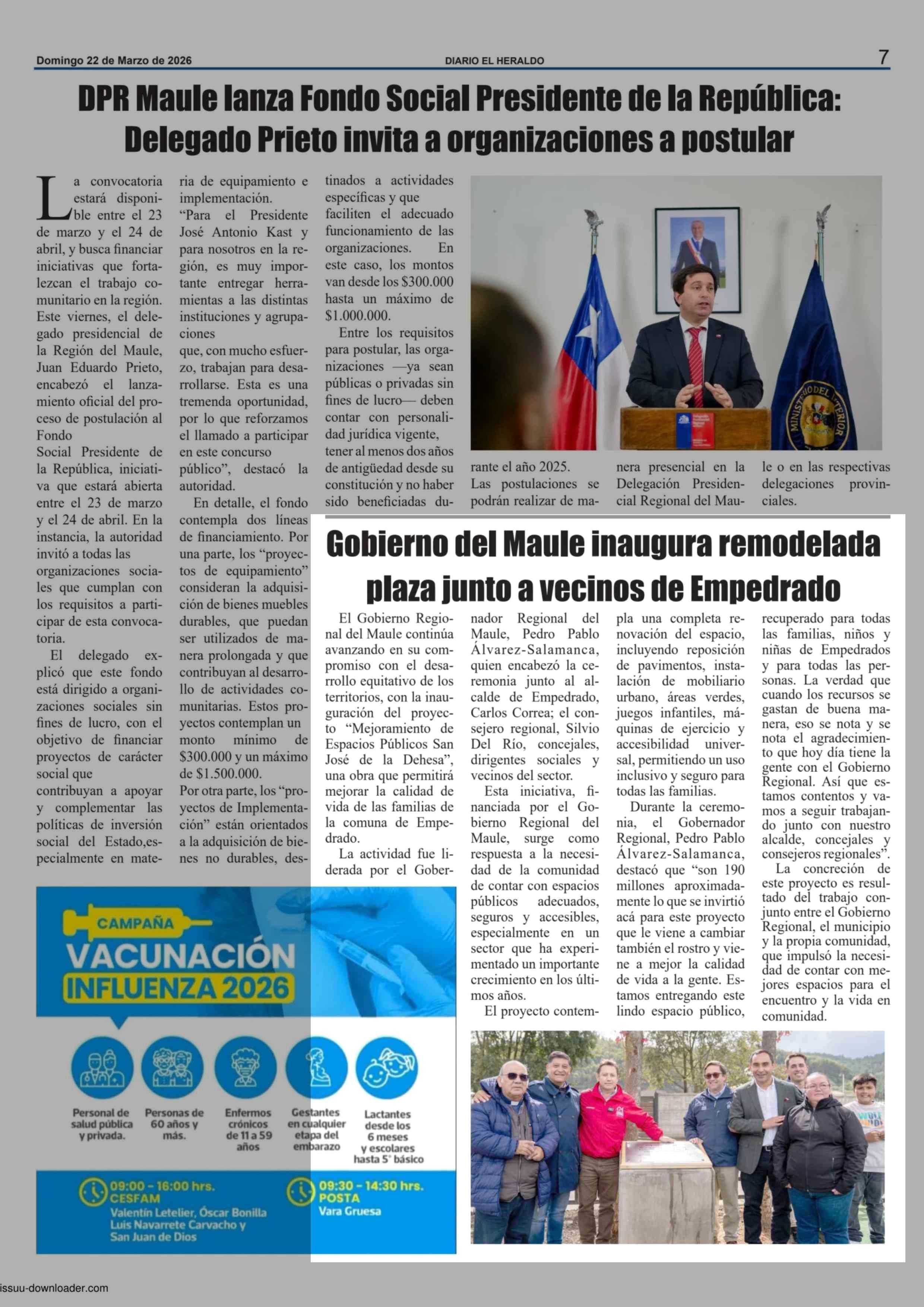 Fecha: 22-03-2026 Sector: Noticia general Región: Región del Maule